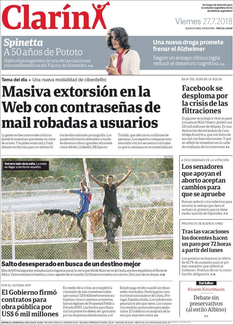 A continuación reproducimos las tapas de los principales diarios del país. El ajuste de cambiemos para el 2019 sigue debatiéndose, ahora analizan como será el recorte en los planes de viviendas. El comportamiento de la divisa estadounidense es seguido de cerca por los diarios económicos así como el impacto del riesgo país.