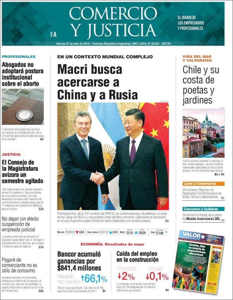 El presidente Macri busca inversiones para el país en la reunión de las BRICS, logró reuniones con sus pares ruso, indio y chino. Putin y Xi Jiping ratificaron sus intenciones de llevar adelante los proyectos de inversión, lo que le da un respiro a Cambiemos.