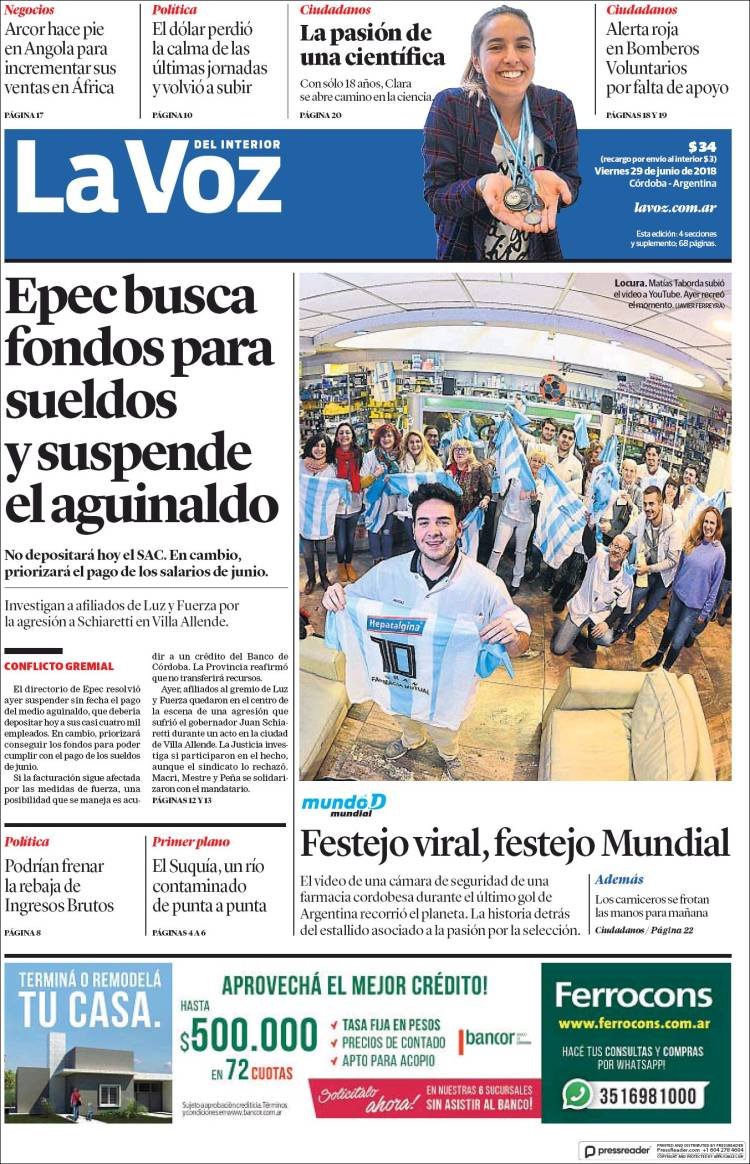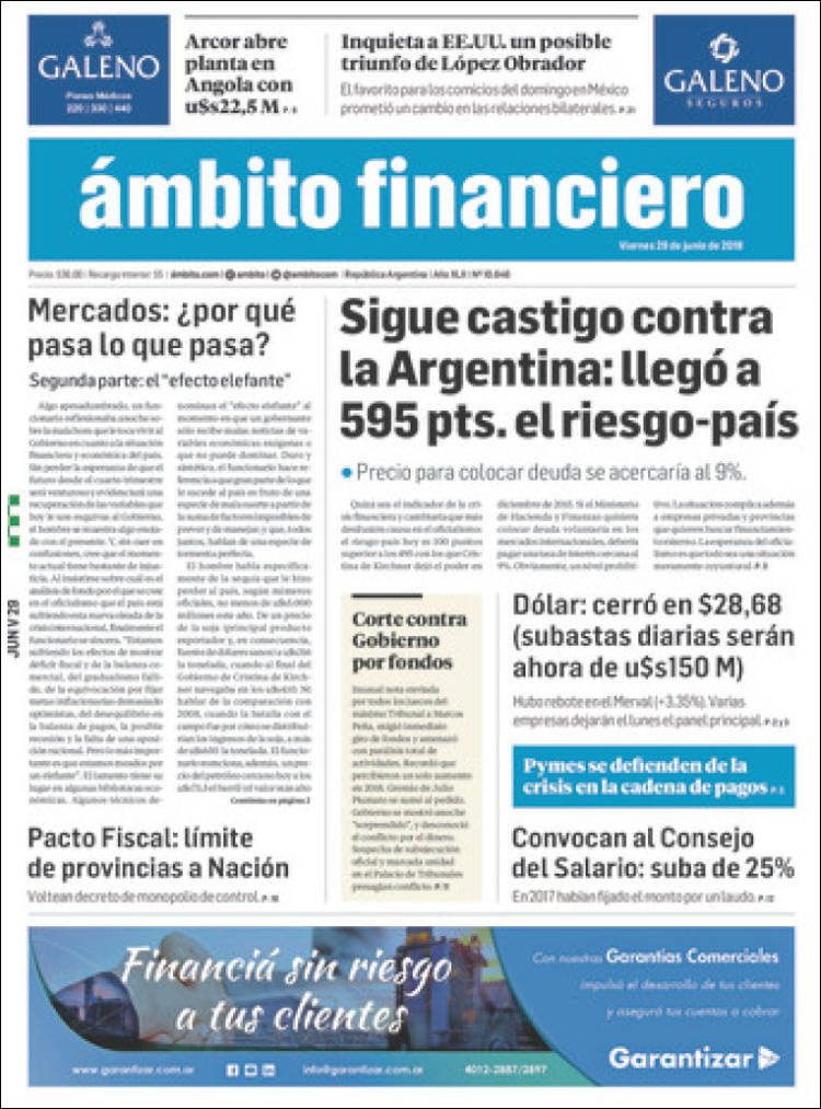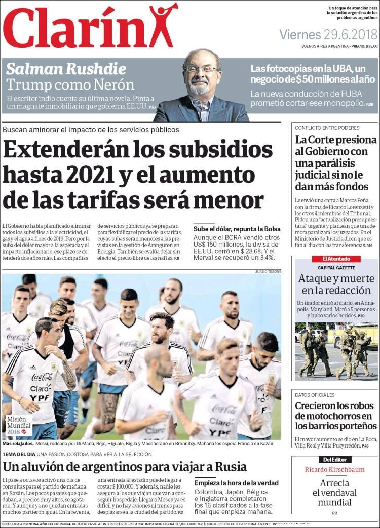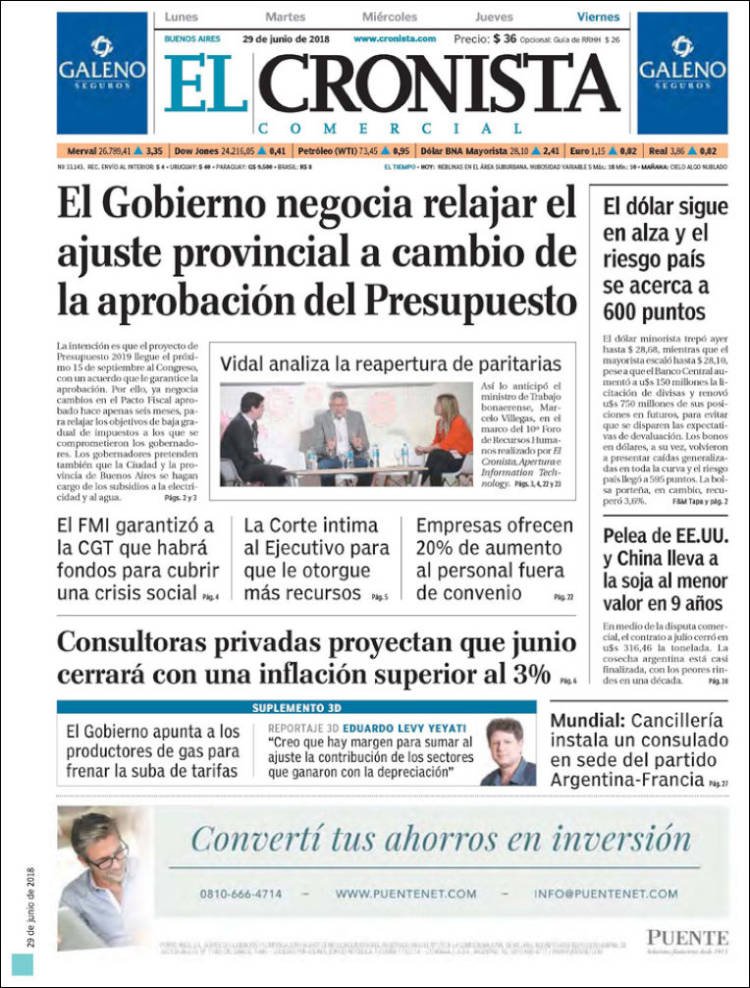 Las tapas de los diarios del viernes 29/6: El dólar perdió la paciencia y comenzó la puja por el presupuesto 2019