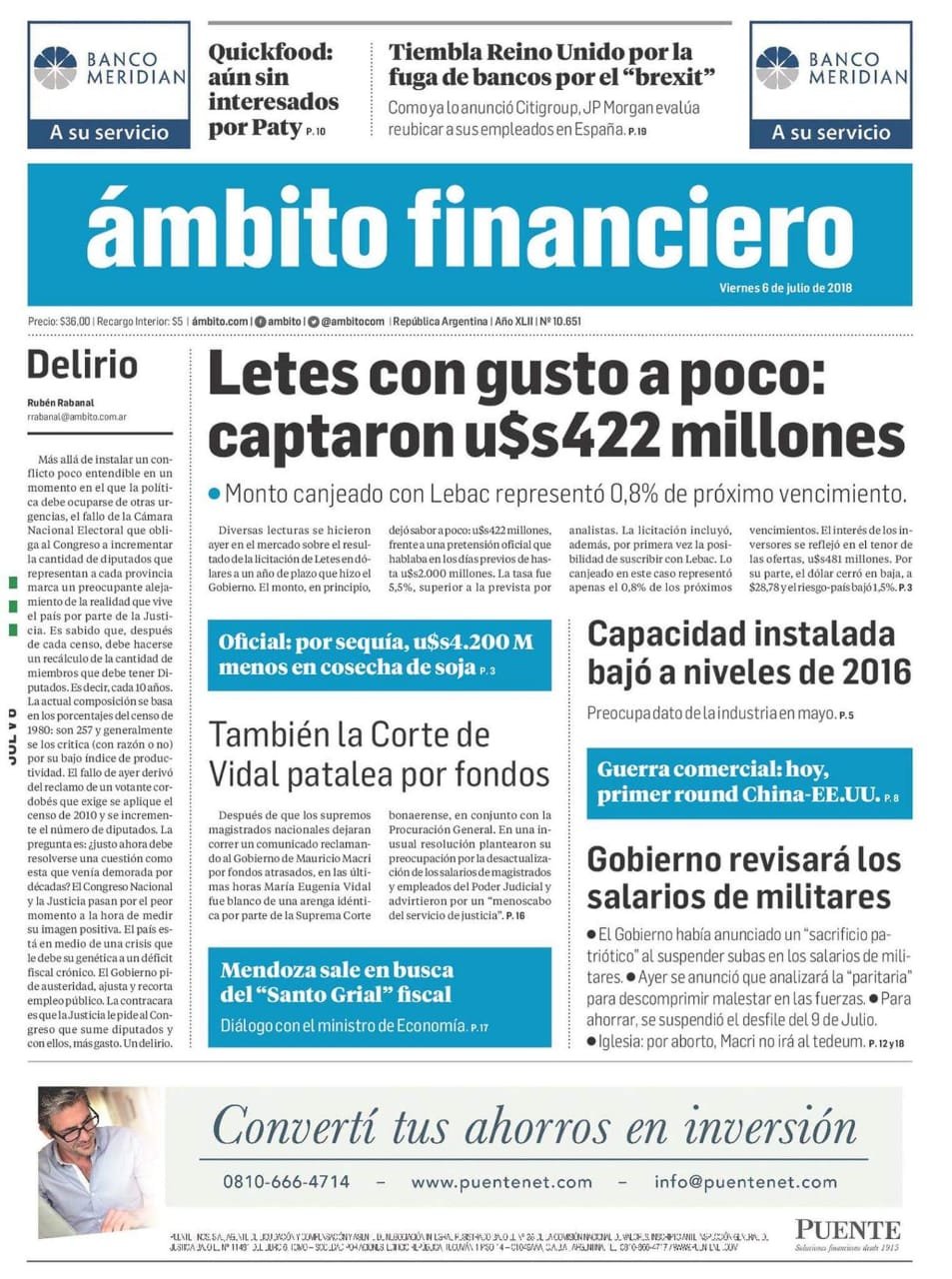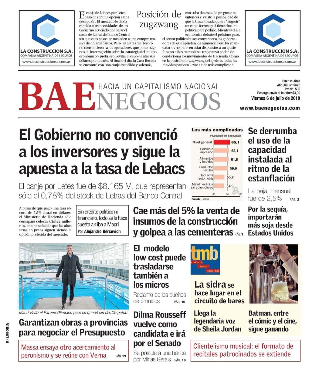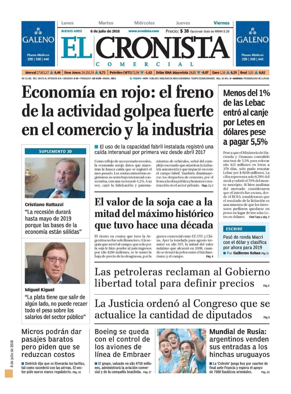A continuación reproducimos las tapas de los diarios más importantes del país. El Gobierno busca recuperar las Lebacs para controlar la devaluación. La actividad económica frenada y su impacto en el comercio y la industria. Según la UIA se pierden más de 2000 empleos por día.
