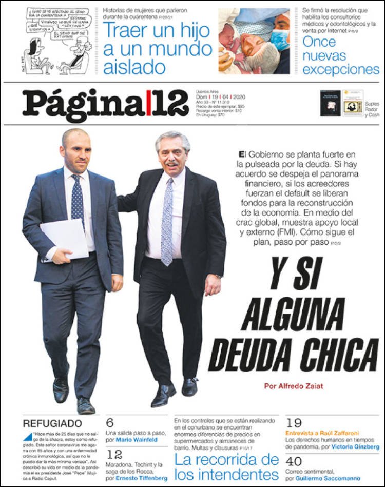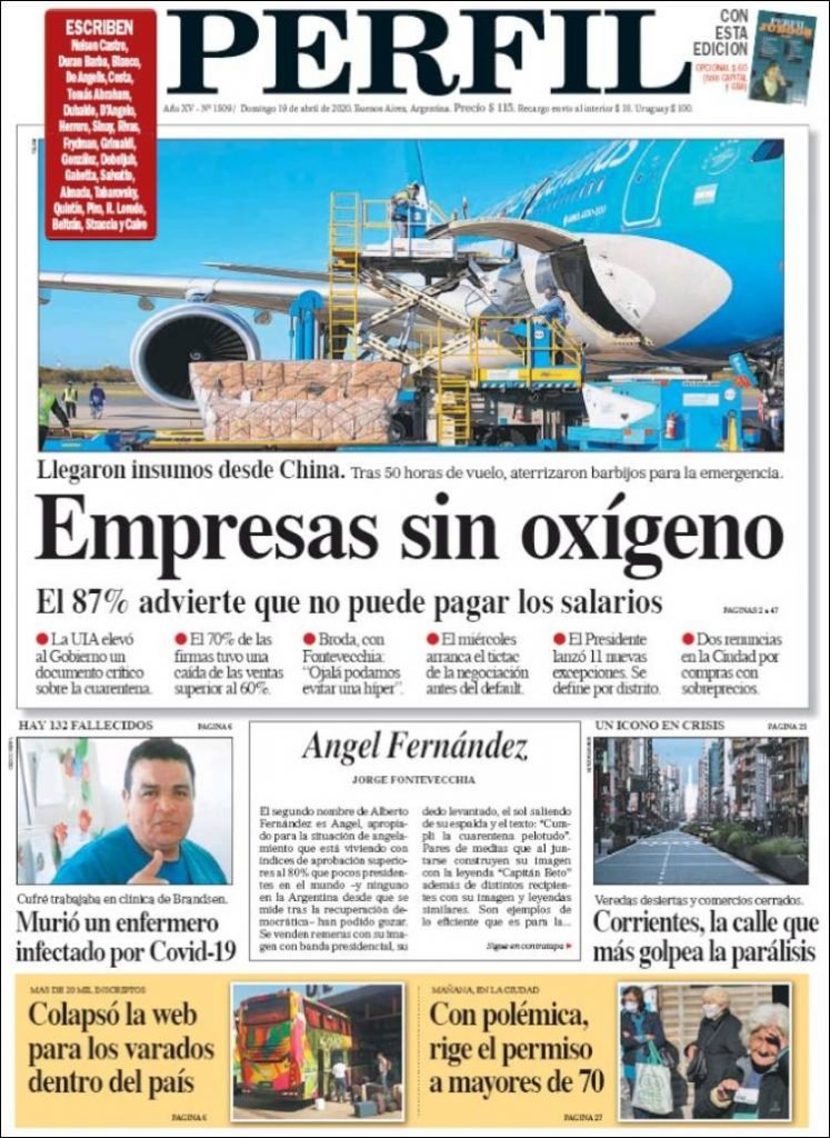 A continuación, repasamos las tapas de los diarios del domingo 19 de abril. Hoy se cumplen 30 días de confinamiento (arrancó el viernes 20 de marzo). Las noticias económicas le ganan a las sanitarias en las portadas de hoy.
