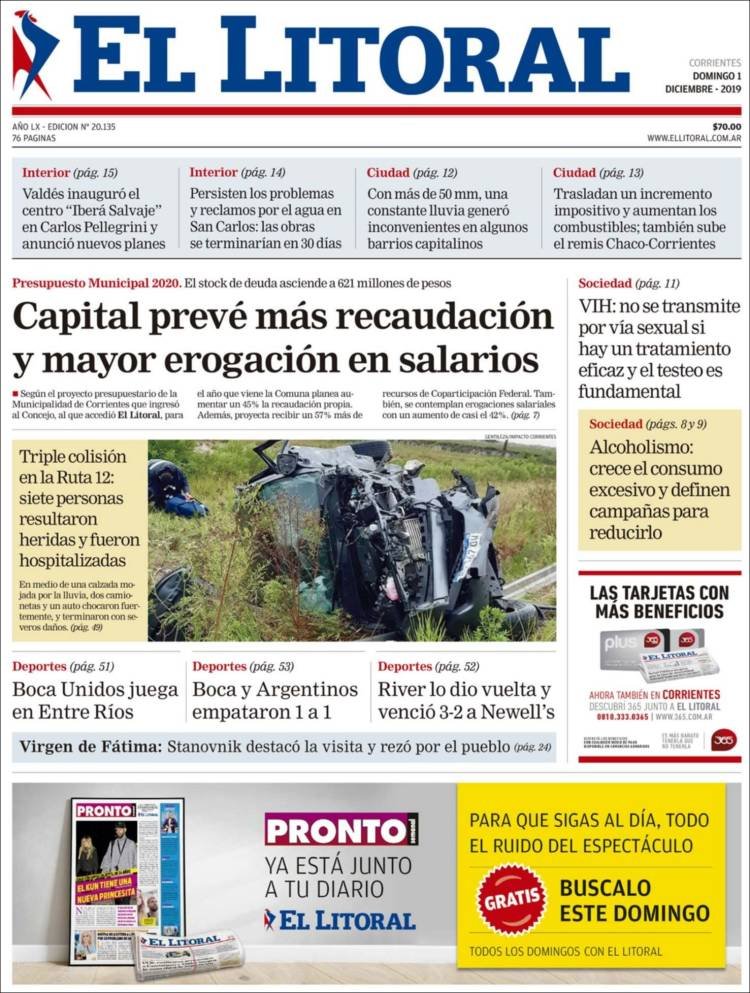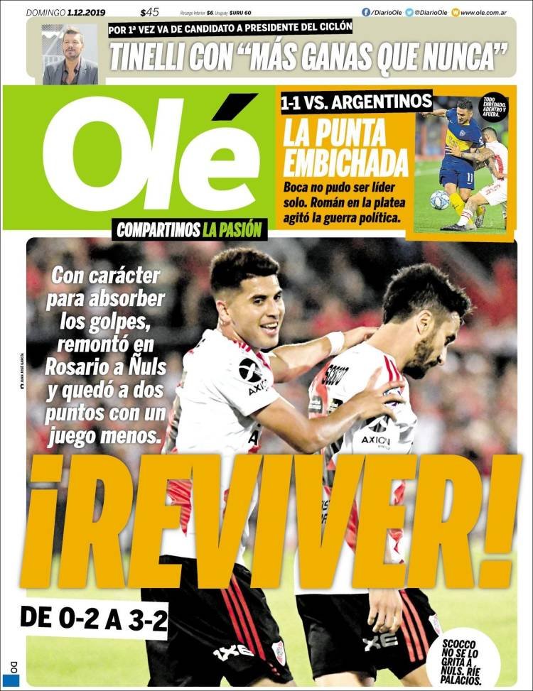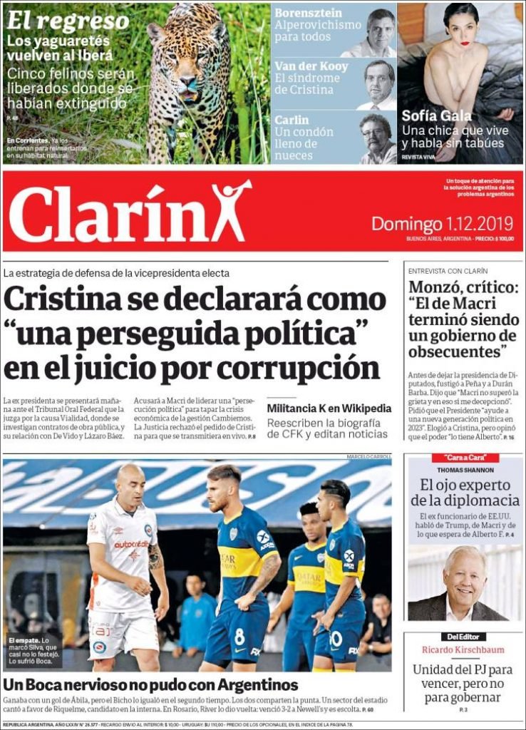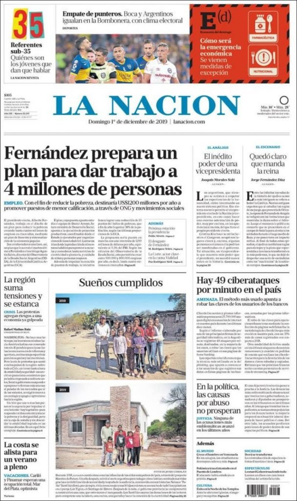A continuación, repasamos las portadas del domingo 1° de diciembre. El plan de Alberto Fernández para generar 4 millones de puestos de trabajo con empleos, con oficios y canalizados a través de ONGs, uno de los temas principales. Empató Boca y River lo dio vuelta en Rosario.
