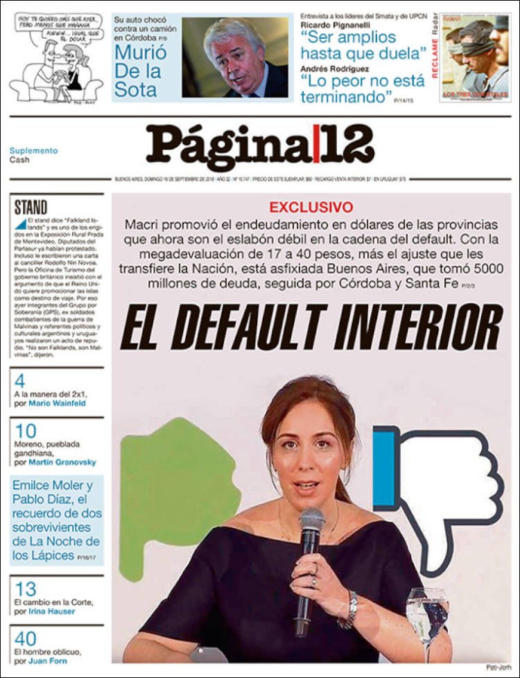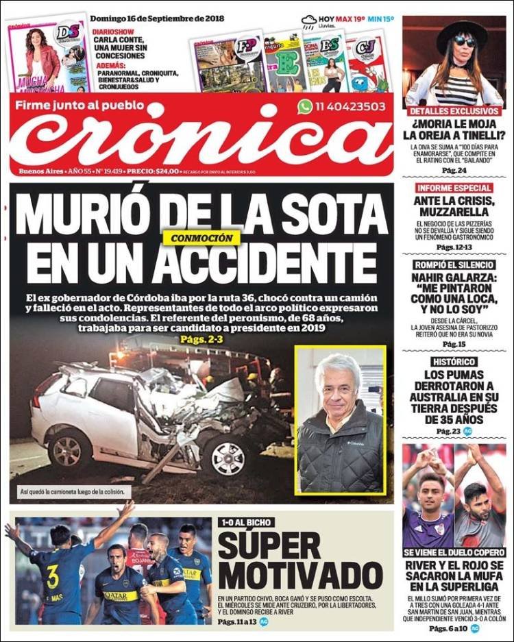 Las tapas del domingo 16 de septiembre: La muerte de De La Sota y la victoria de Los Pumas