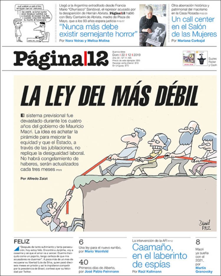 A continuación, repasamos las tapas de los diarios del domingo 22 de diciembre. El impacto de las primeras medidas económicas, entre lo más comentado en las portadas.