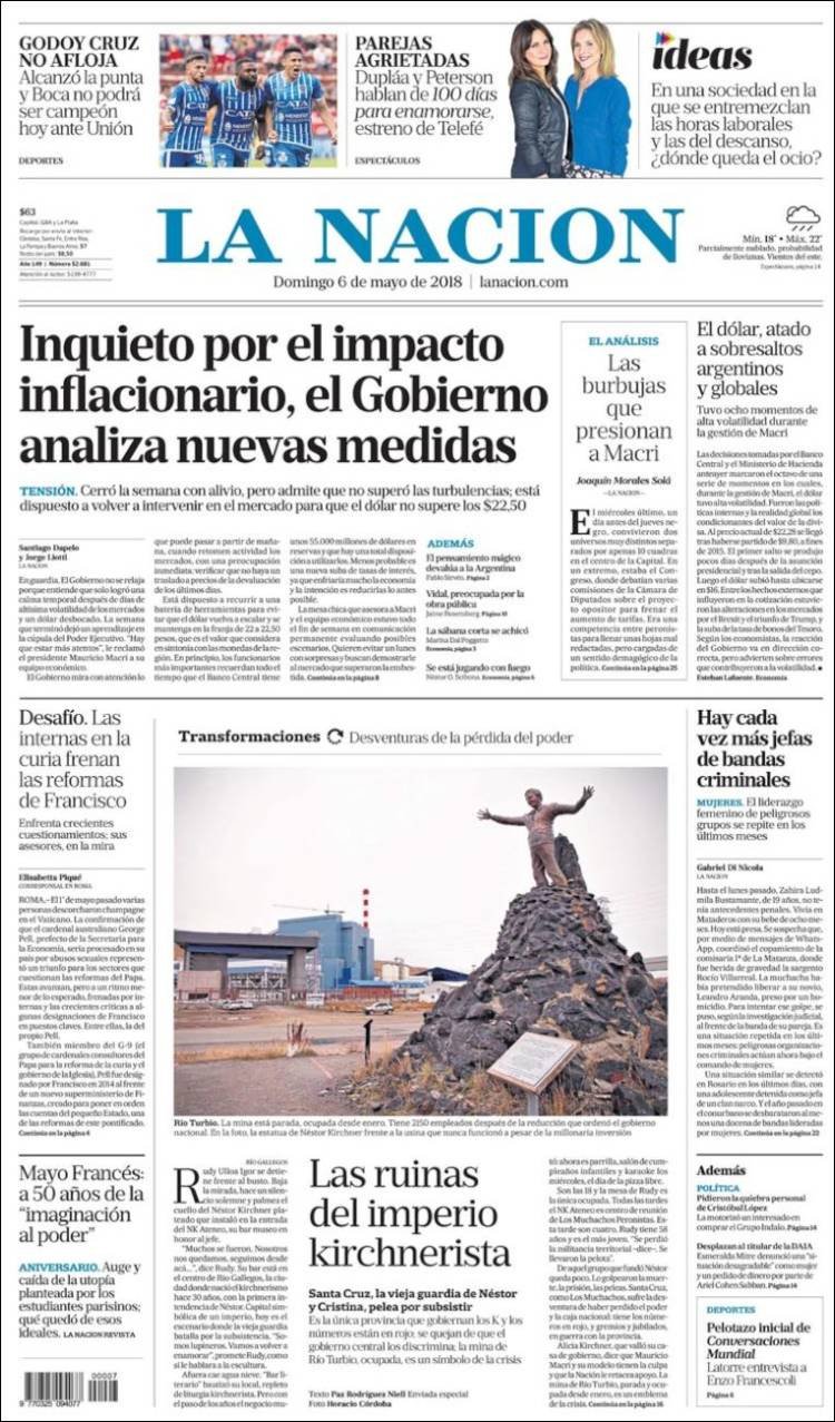 A continuación, repasamos las tapas de los diarios del domingo 6 de mayo, donde el tema predominante es la corrida cambiaria, las medidas oficiales, el impacto político y lo que puede suceder con la reapertura de los mercados desde mañana.