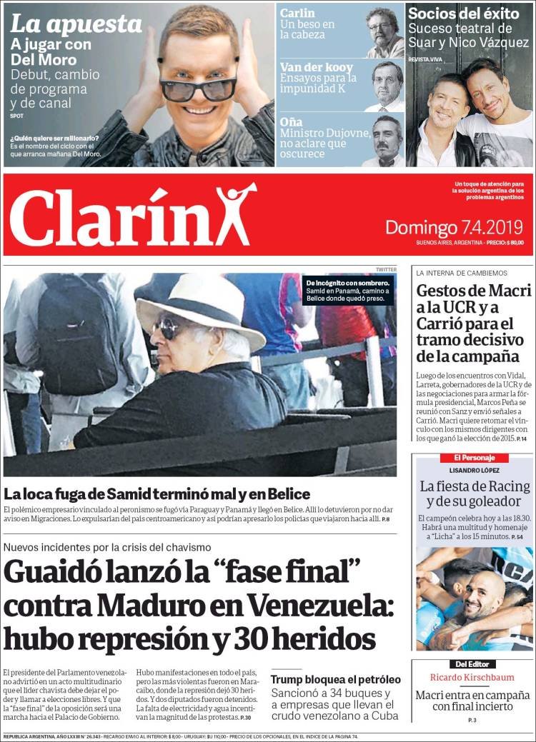 A continuación, repasamos las tapas de los diarios del domingo 7 de abril. La captura del empresario de la carne Alberto Samid es uno de los temas principales.