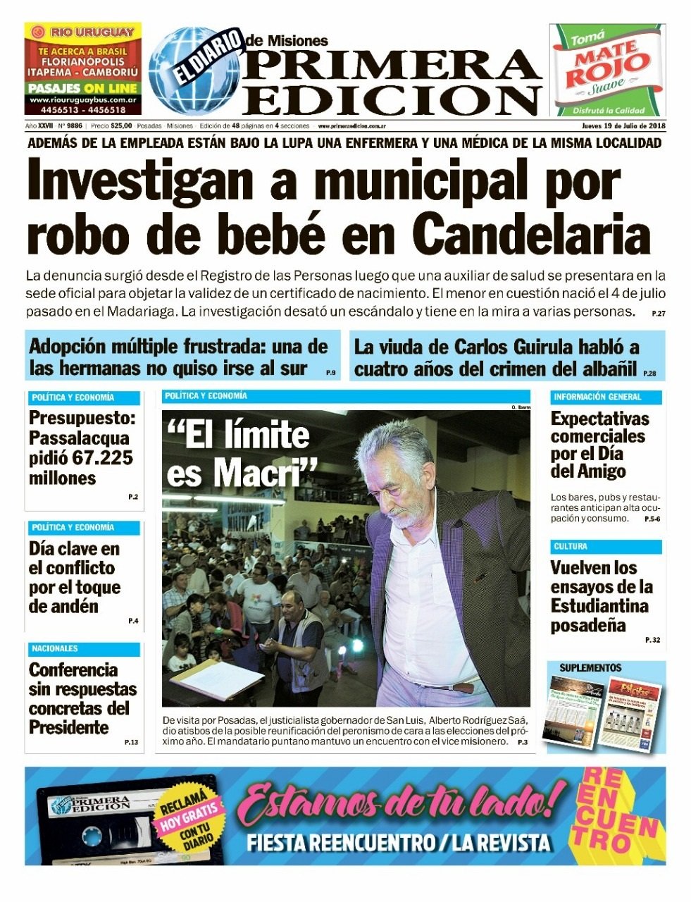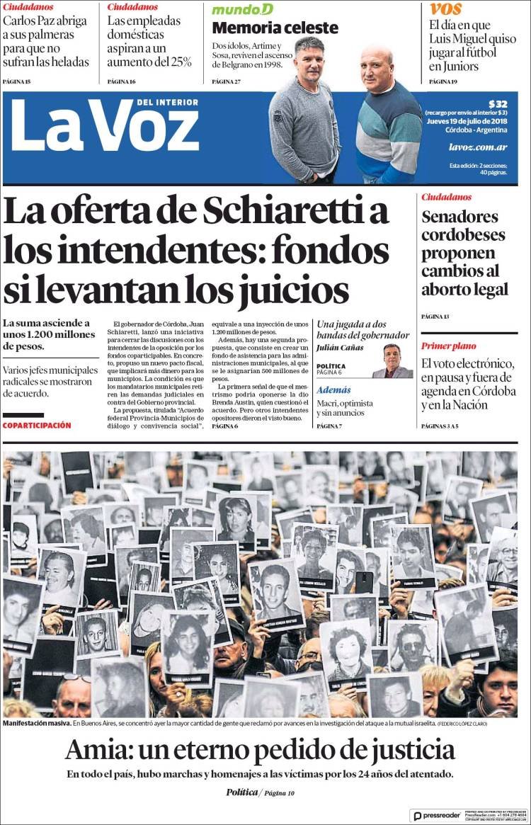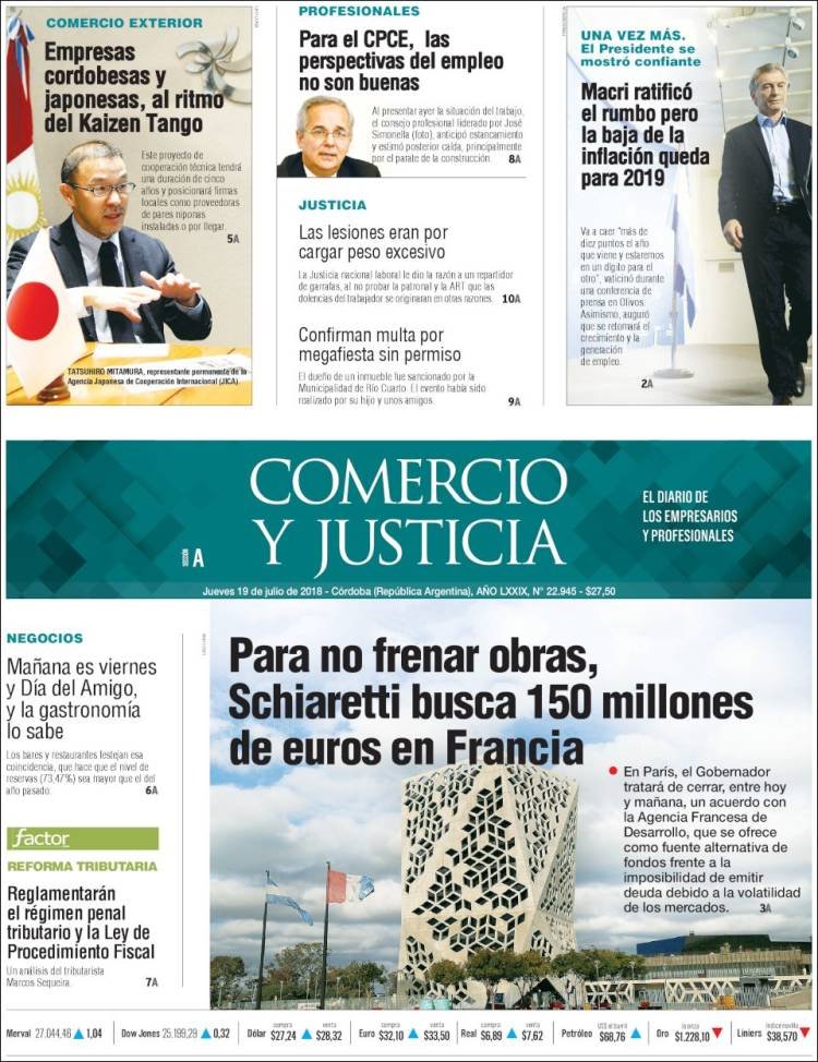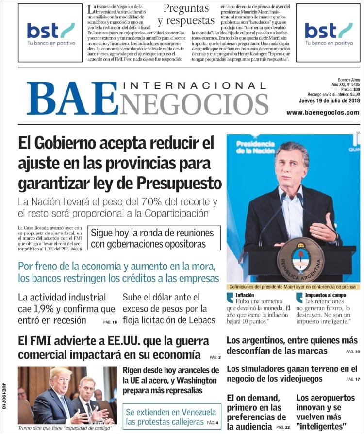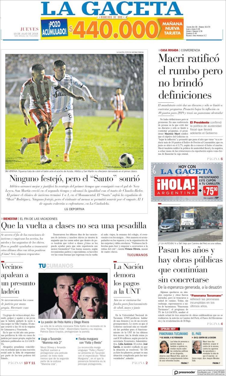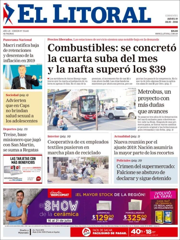 Las tapas del jueves 19/7: Macri ratificó el rumbo y reconoció que “la tormenta” de la inflación no bajará este año