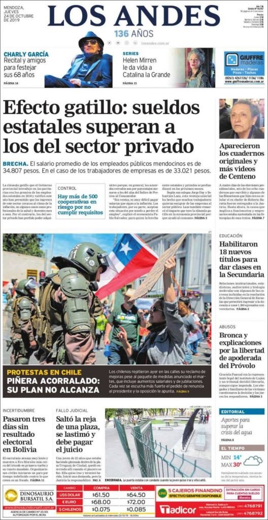 Las tapas del jueves 24: Los cierres de campaña y la economía