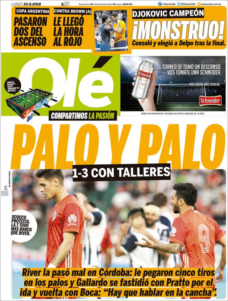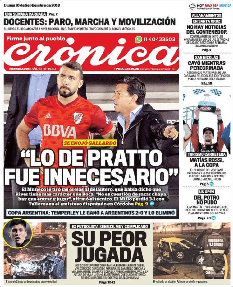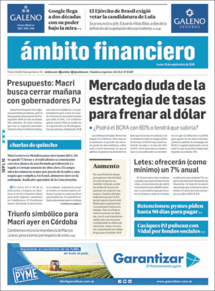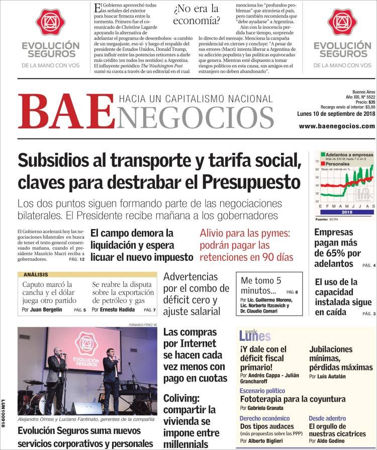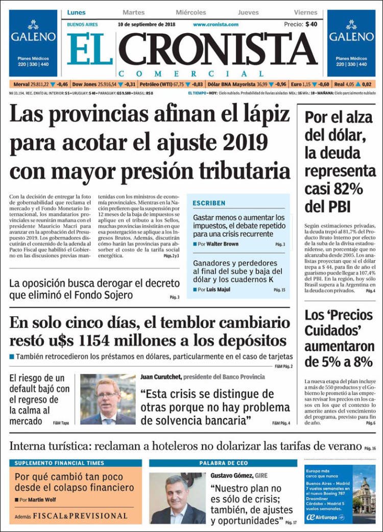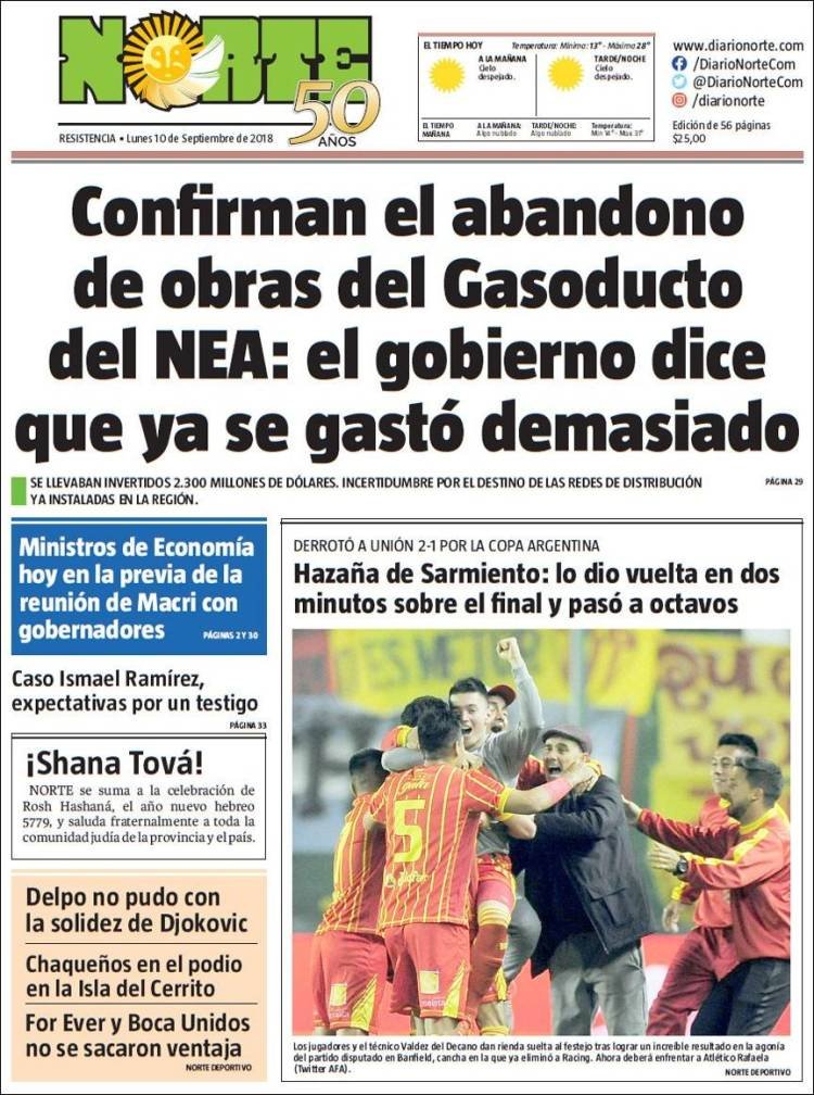 A continuación, repasamos las tapas de los diarios de este lunes 10 de septiembre. La previa de la reunión de Macri con los gobernadores para terminar de sellar el apoyo al Presupuesto 2019 es uno de los temas principales. Además, la caída -con gran actuación- de Juan Martin Del Potro en Nueva York en la final del US Open.
