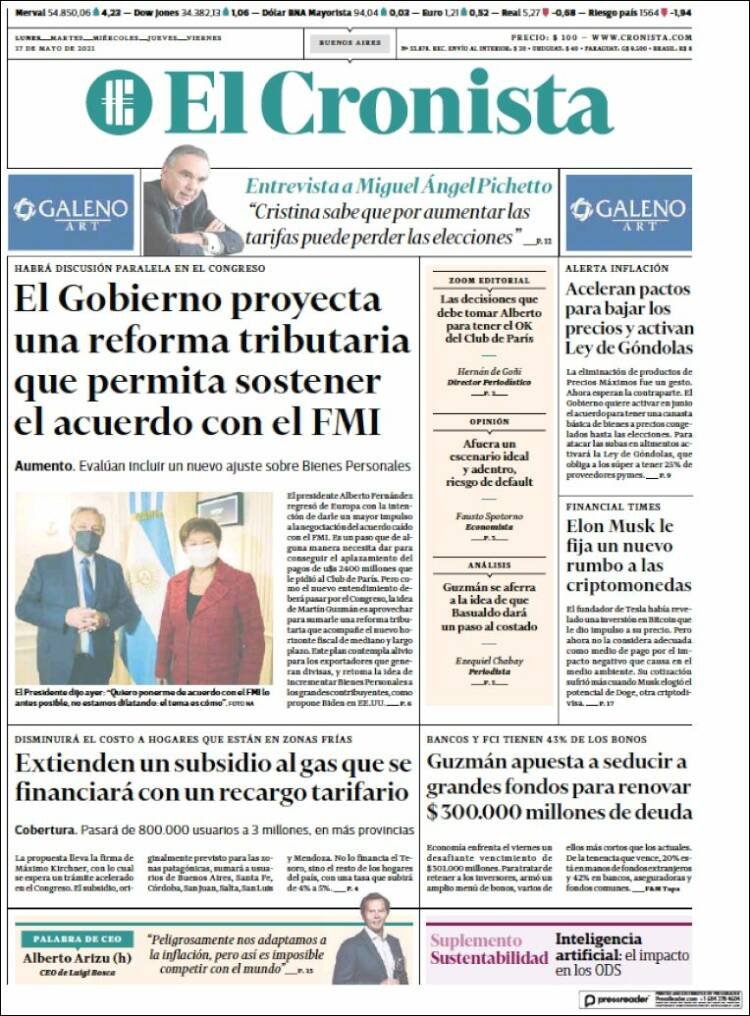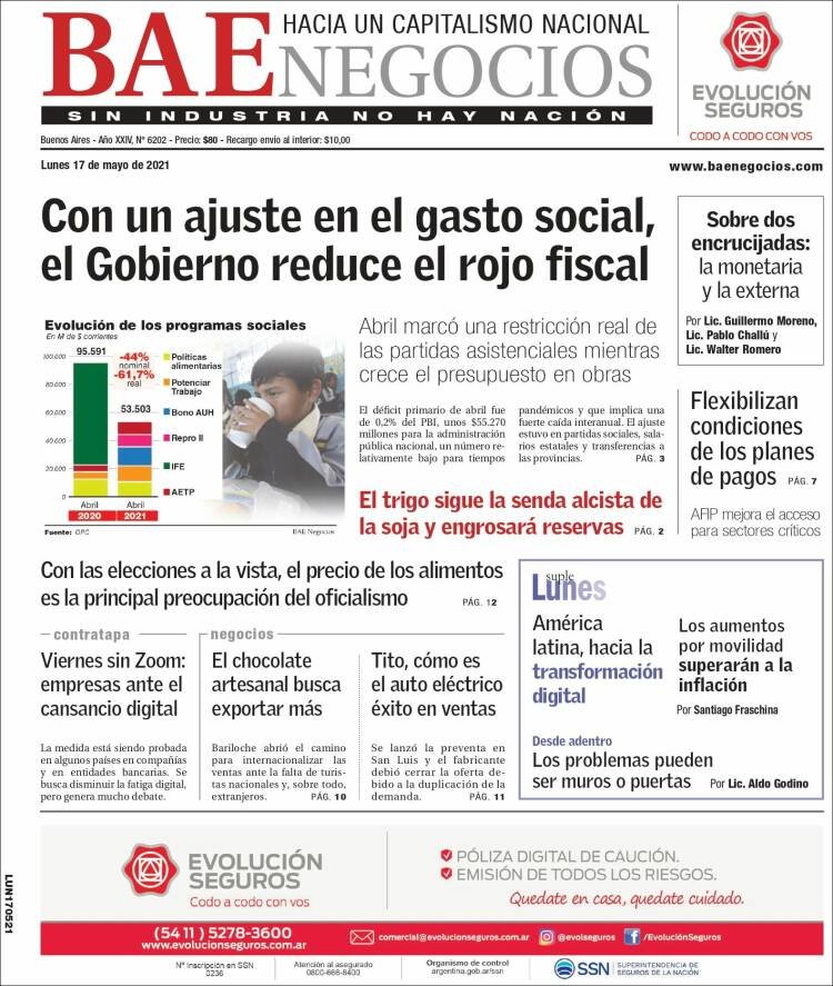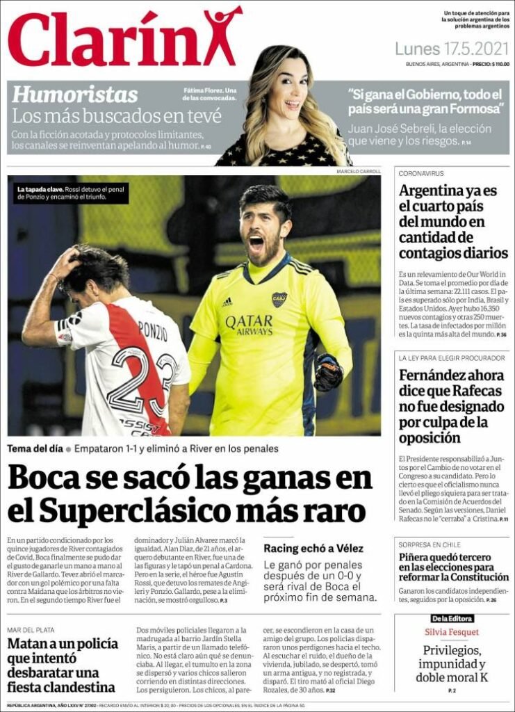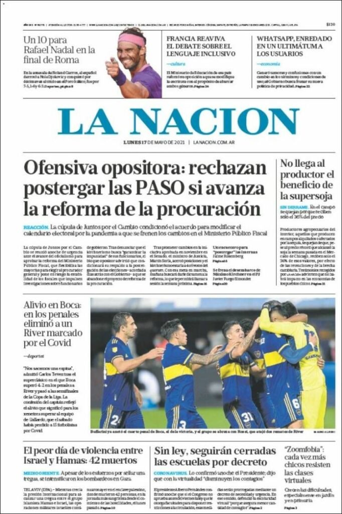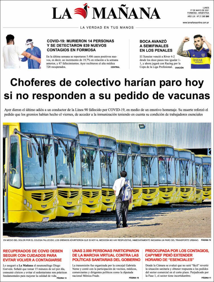A continuación, repasamos las tapas de los diarios del lunes 17 de mayo de 2021.