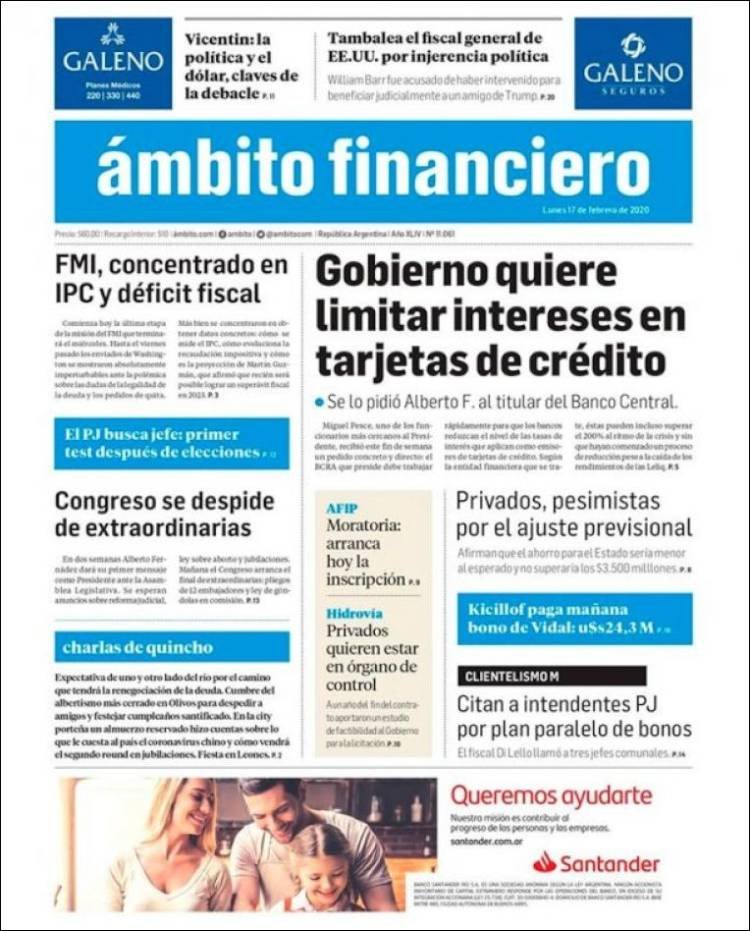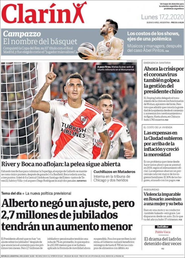 A continuación, repasamos las tapas de los diarios del lunes 17 de febrero. Arranca una nueva semana donde la renegociación con el FMI es tema central. Además, ganaron River y Boca y se calienta el final de la Superliga.