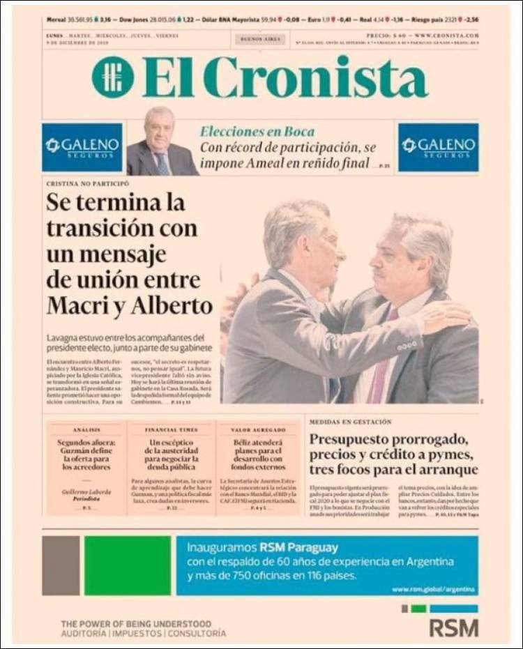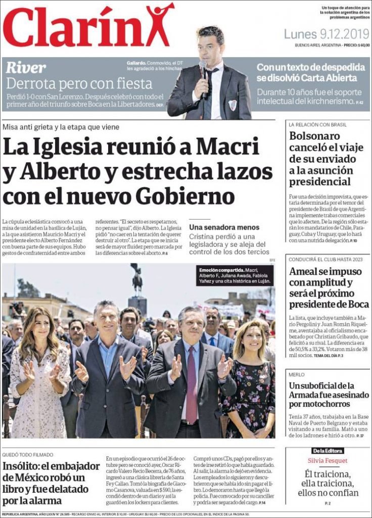 Las tapas del lunes 9: El abrazo entre Macri y Alberto F. y el triunfo de Ameal-Riquelme en Boca