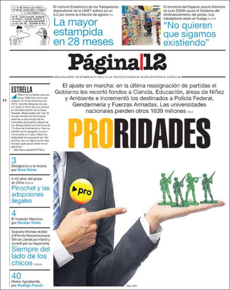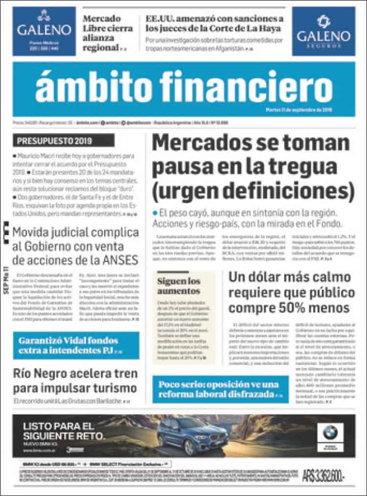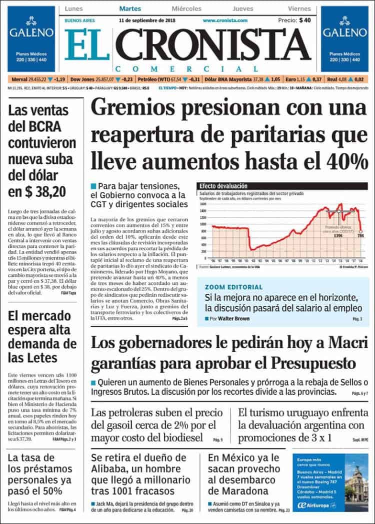 Las tapas del martes 11/9: El “día D” de Macri para aprobar el Presupuesto y avanzar con el FMI