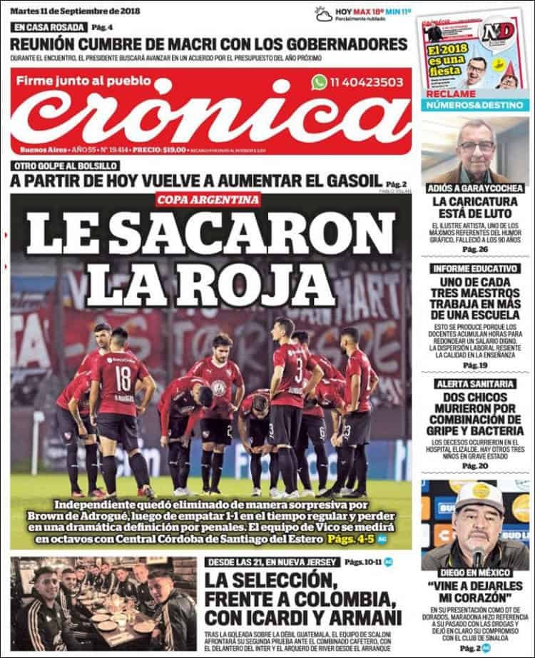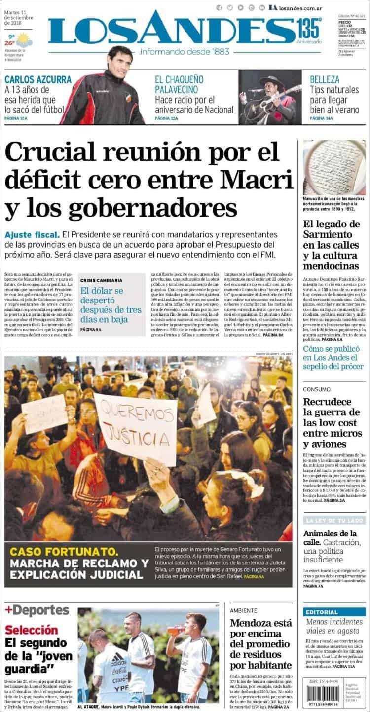 A continuación reproducimos las tapas de los principales diarios del país. Este martes se reúnen, el Presidente con los Gobernadores, que llevan afilados los lapices para debatir “a agenda abierta” (según Frigerio) todo lo concerniente al Presupuesto 2019, el ajuste fiscal y otras medidas que impactarán en todo el año que viene.