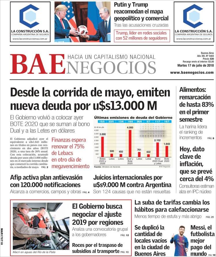 A continuación reproducimos las tapas de los principales diarios del país. A 10 años de la 125 se reaviva el debate por las retenciones. Caputo enfrente su primer SuperMartes esperando renovar las Lebacs estabilizando el valor del dólar.