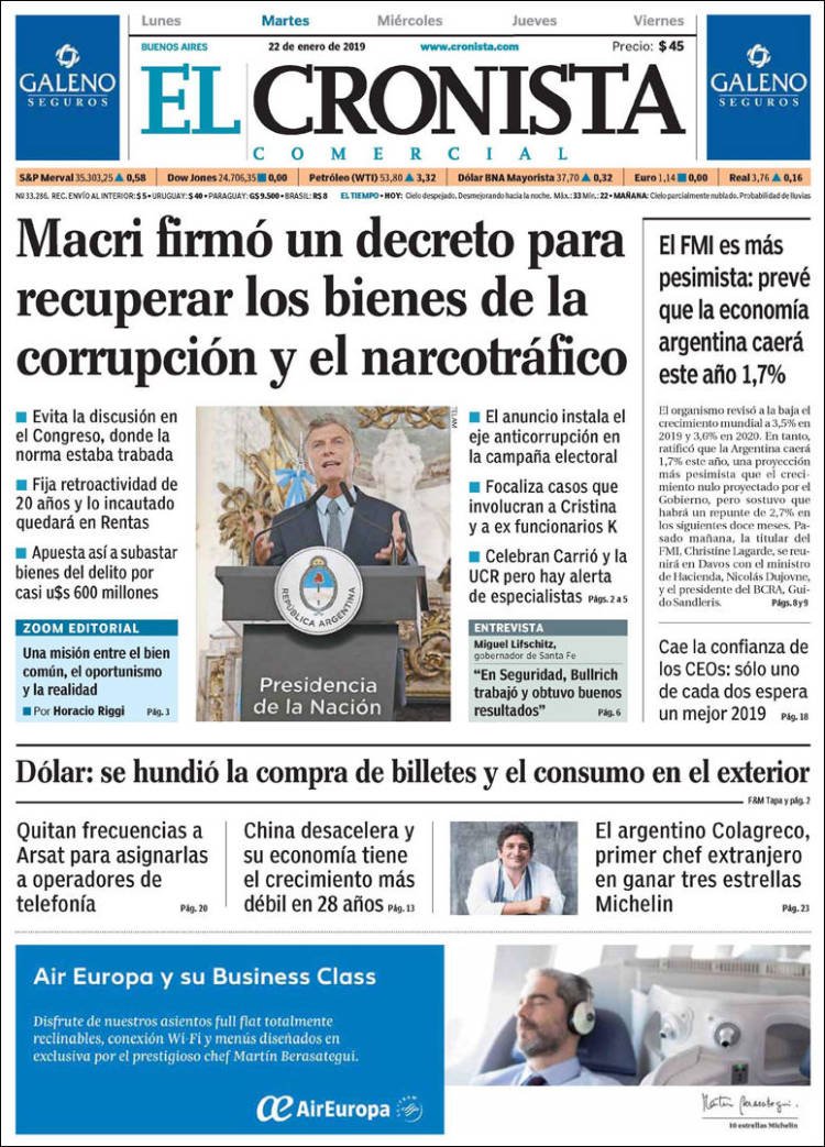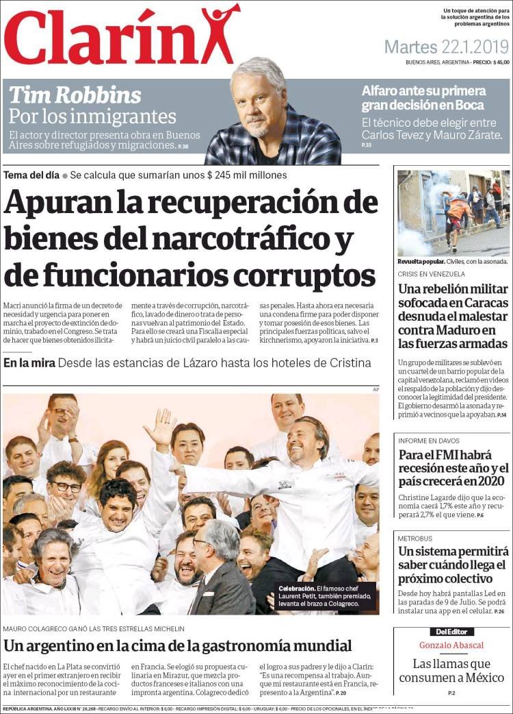 Las tapas del martes 22: Los bienes de la corrupción, campañas y los datos del FMI