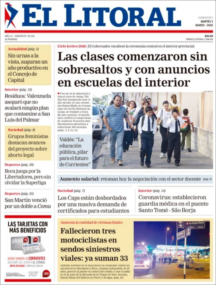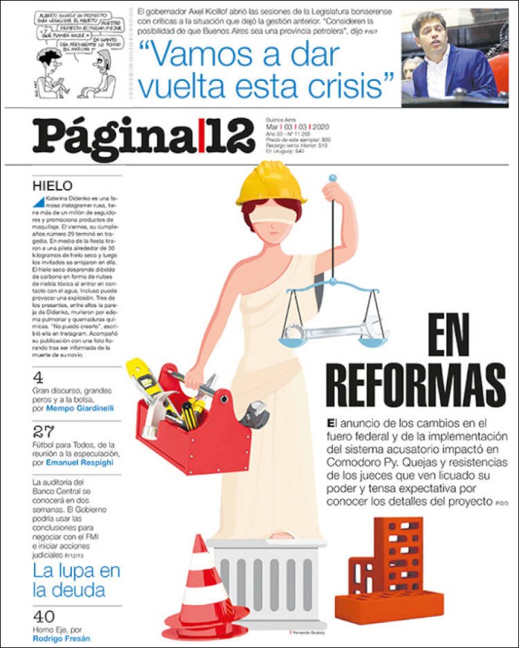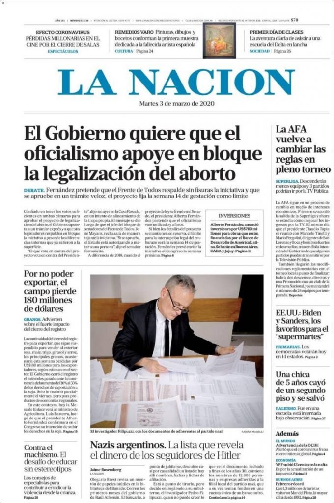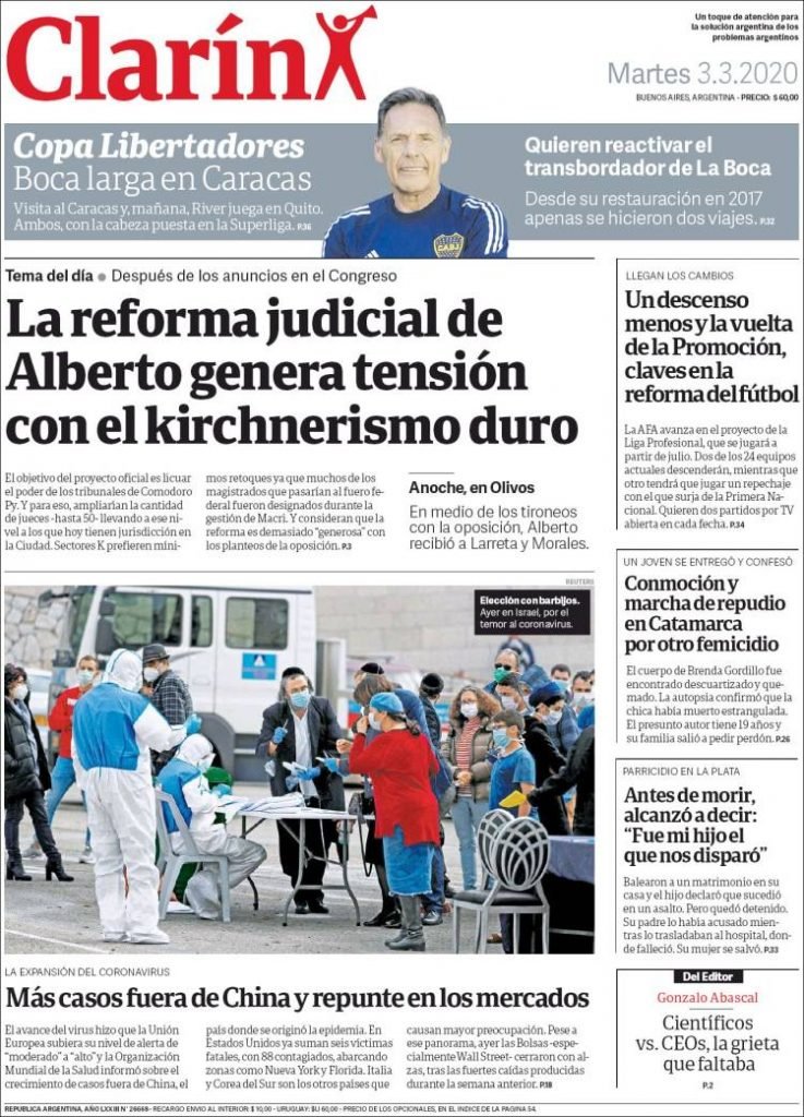 A continuación, repasamos las tapas de los diarios del martes 3 de marzo. La reforma judicial y la legalización del aborto, dos temas que propuso el presidente Alberto Fernández en su discurso del domingo, temas de agenda. Además, la AFA cambia con polémica la regla de los próximos descensos.
