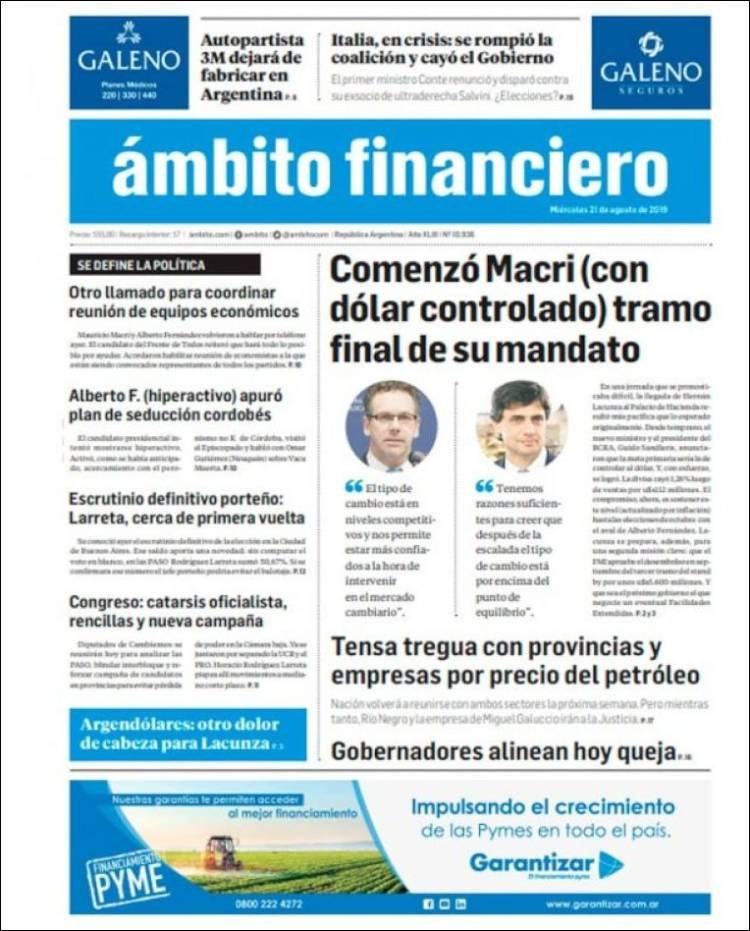 Las tapas del miércoles 21: Lacunza y sus dichos sobre el dólar, que ya subió demasiado