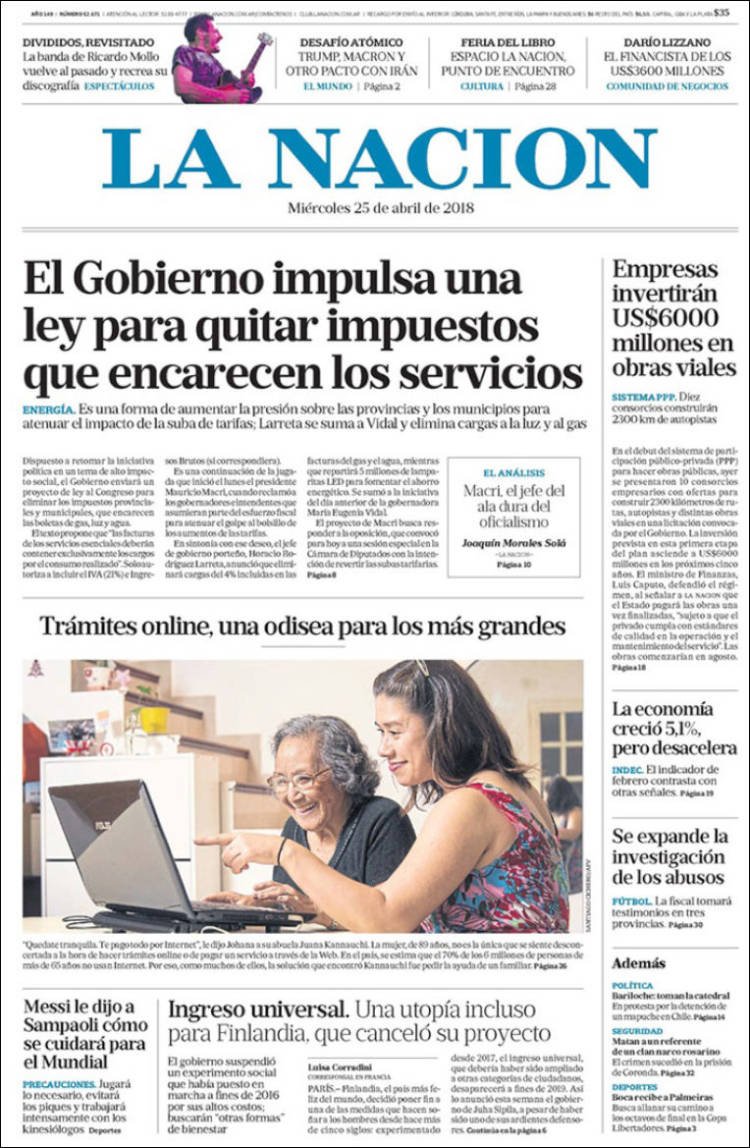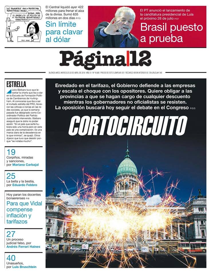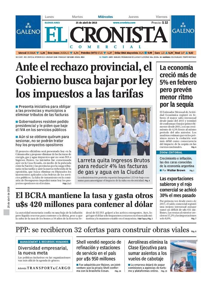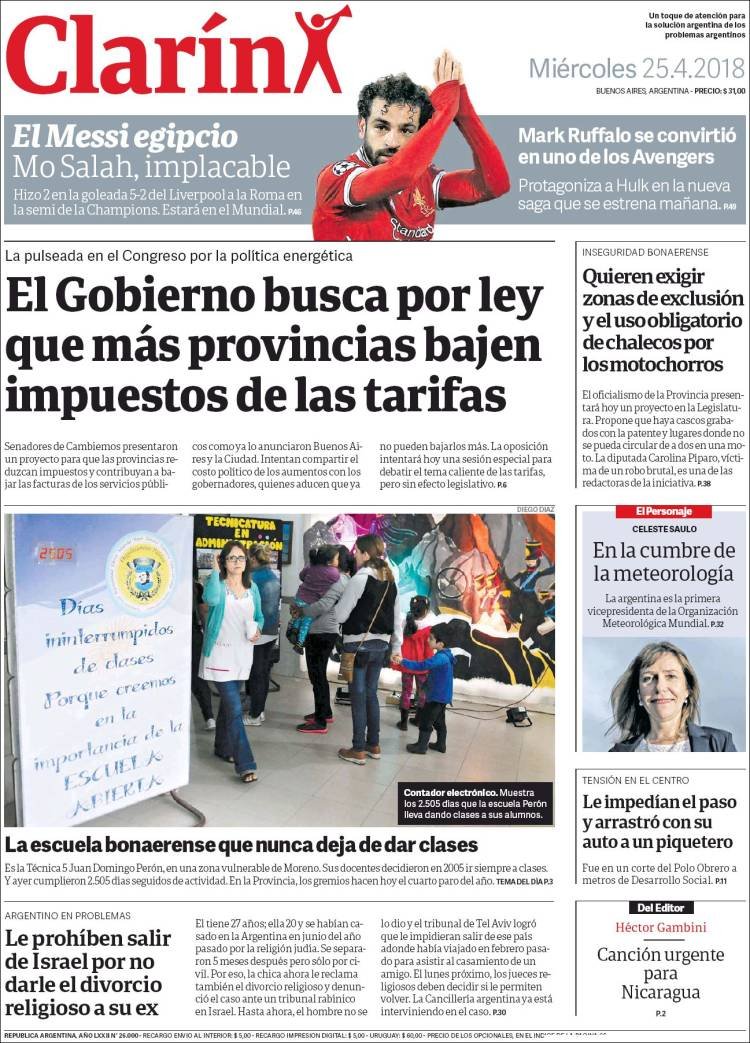 Las tapas del miércoles 25/4: Macri ahora busca por ley que más provincias bajes impuestos a las tarifas