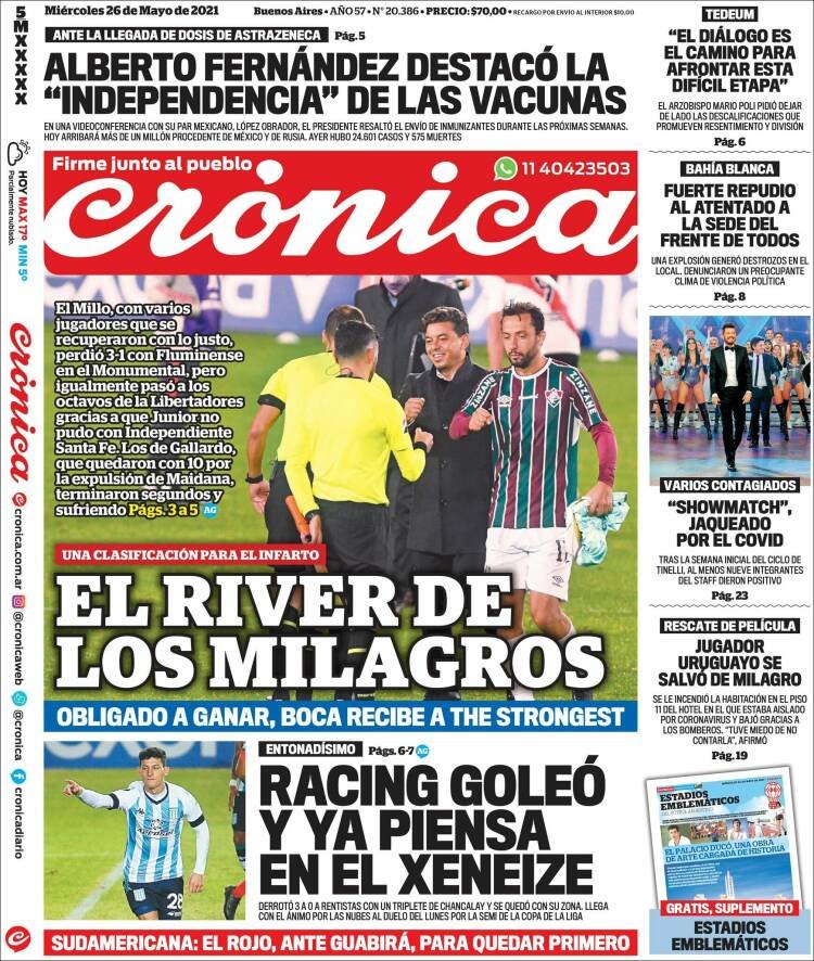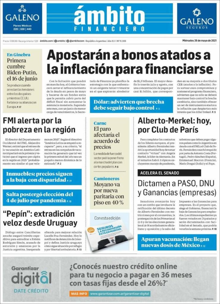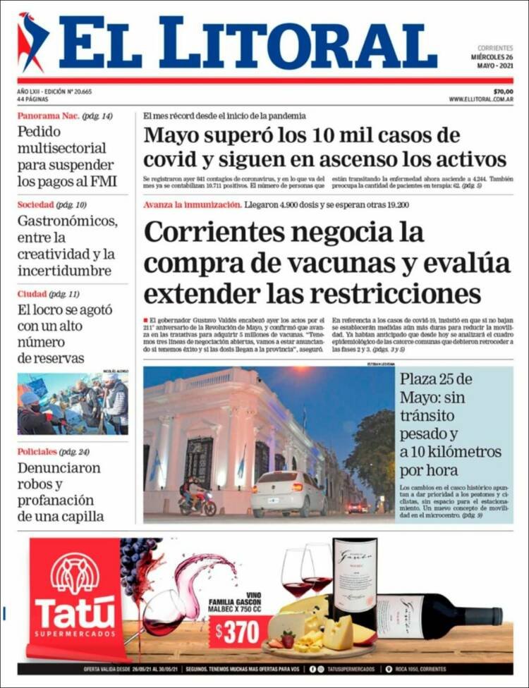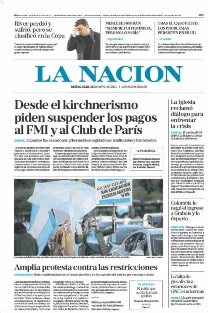 A continuación, repasamos las tapas de los diarios del miércoles 26 de mayo de 2021.