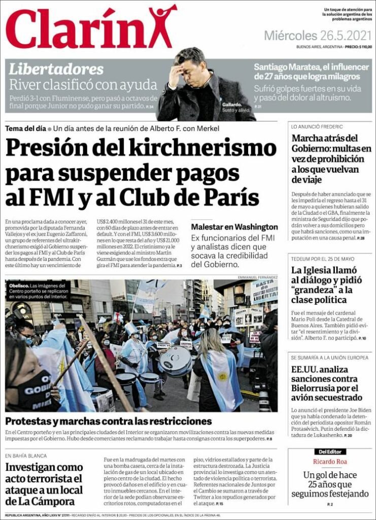 Las tapas del miércoles 26: El impacto de las restricciones en la economía; Ríver, perdió pero pasó
