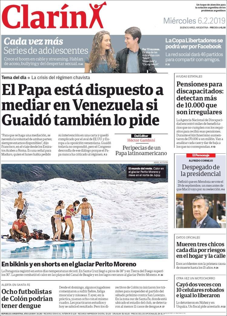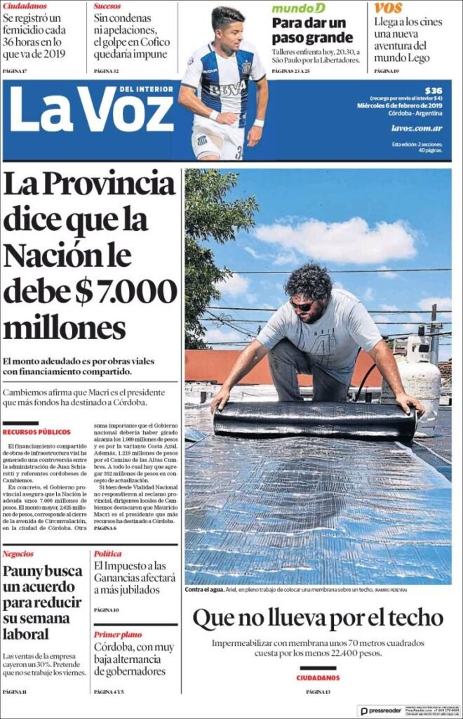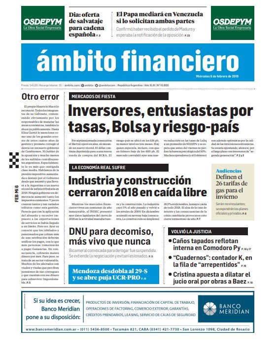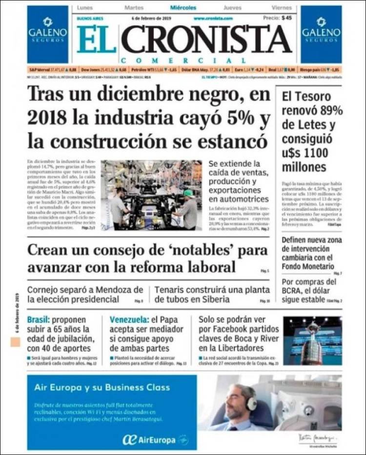 A continuación reproducimos las tapas de los principales diarios del país. Los datos del INDEC del último trimestre mostraron la aplastante caída del sector industrial y de la construcción, con una obra pública en extinción para gran parte del país, la tendencia se agrava en el verano.