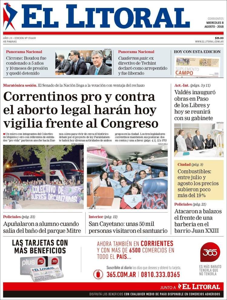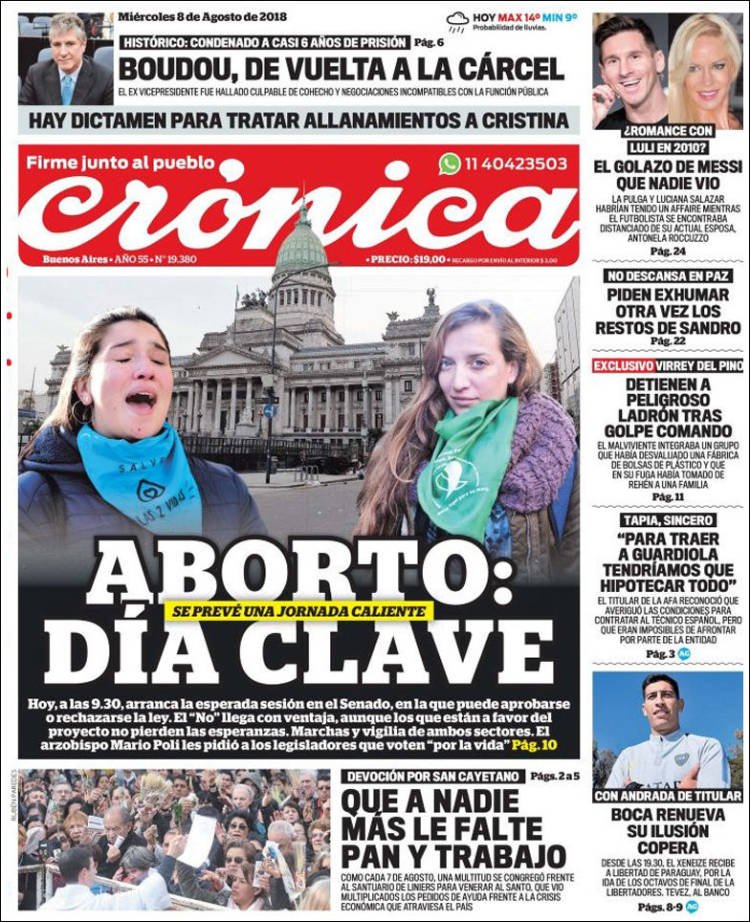 Las tapas del miércoles 8/8: El día del debate donde se debe legislar las diferencias, y protegiendo a las mujeres que no desean ser madres
