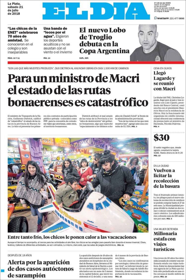 Las tapas del sábado 21/7: La visita de Lagarde y la pelea del gobierno con Camioneros