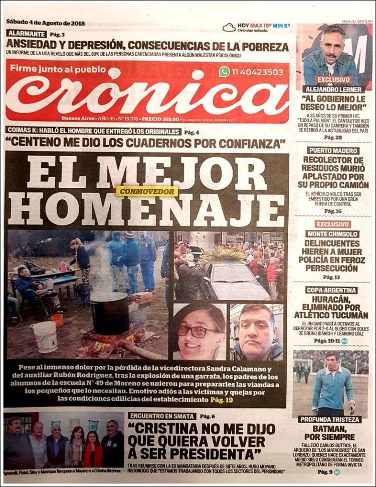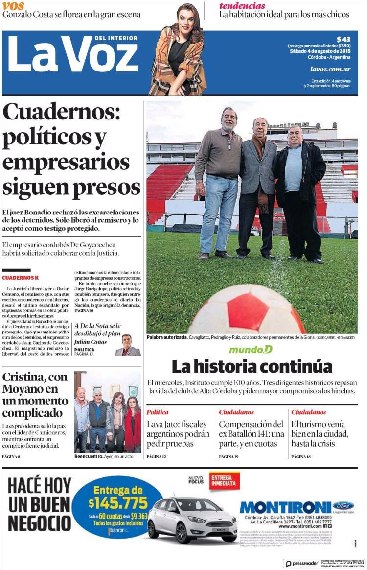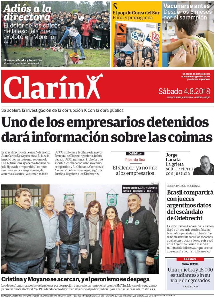 A continuación reproducimos las tapas de los principales diarios del país. Continúa la saga del “loco de los cuadernos”, aún sin aparecer los originales la causa avanza y apareció un empresario “arrepentido”, los medios porteños siguen con el tema con gran despliegue.