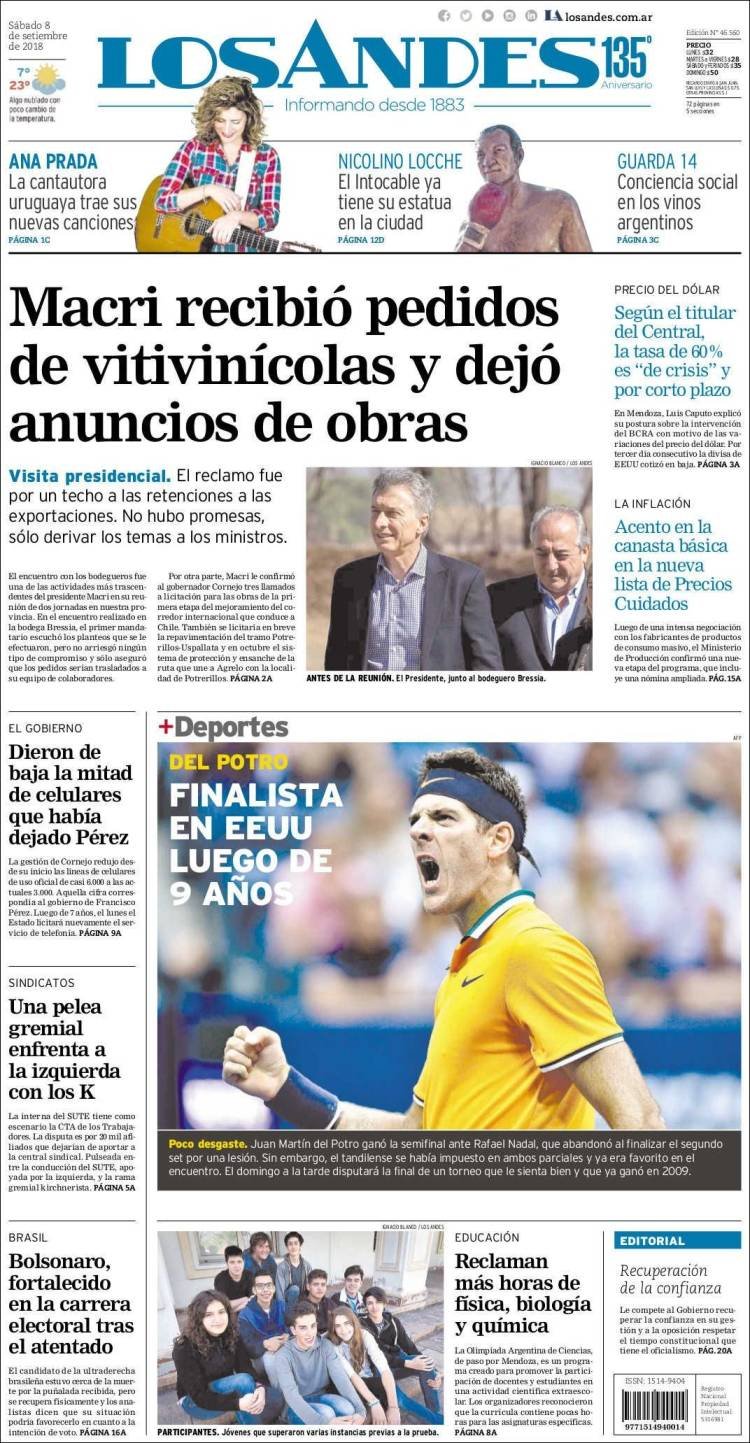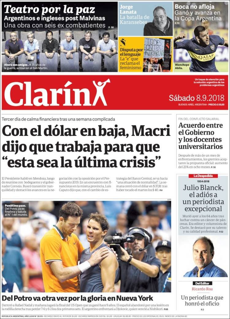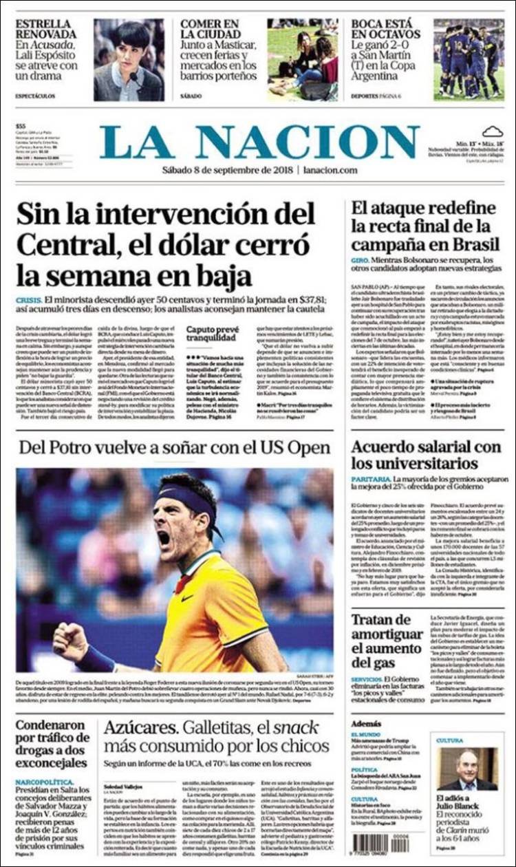 A continuación reproducimos las tapas de los principales diarios del país. La pelea por el presupuesto 2019 es la gran intriga, la reunión del martes del Presidente Macri con los Gobernadores será el punto central del debate.