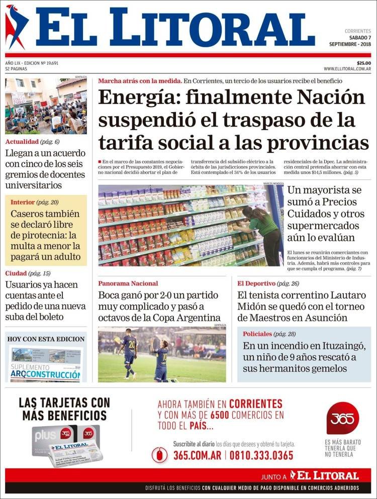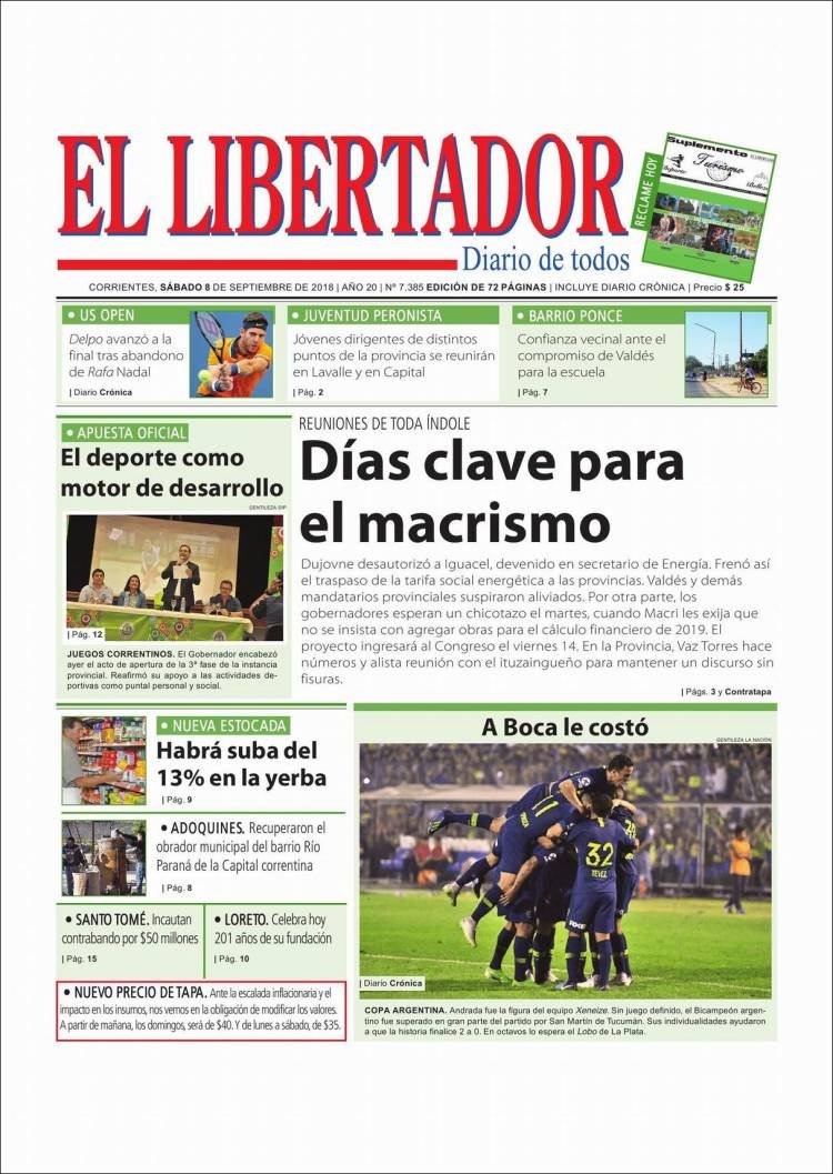 Las tapas del sábado 8/9: El dólar en baja, la pelea por los subsidios y la reunión Macri-Gobernadores