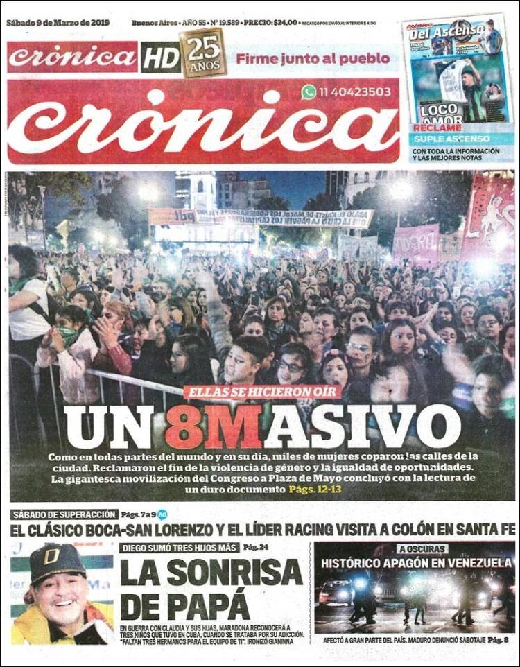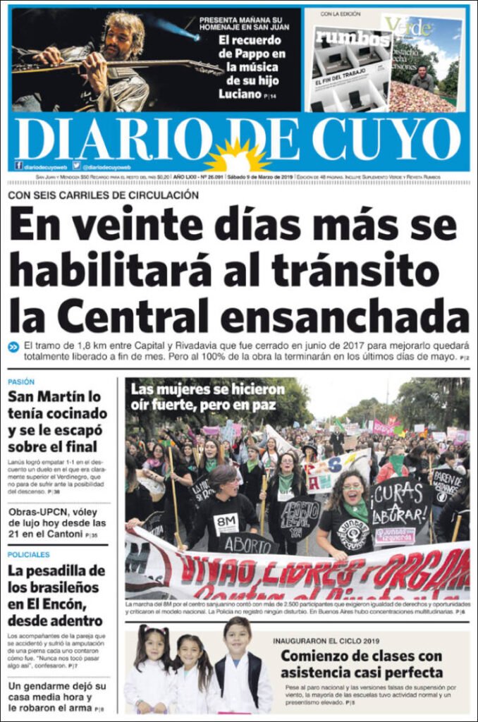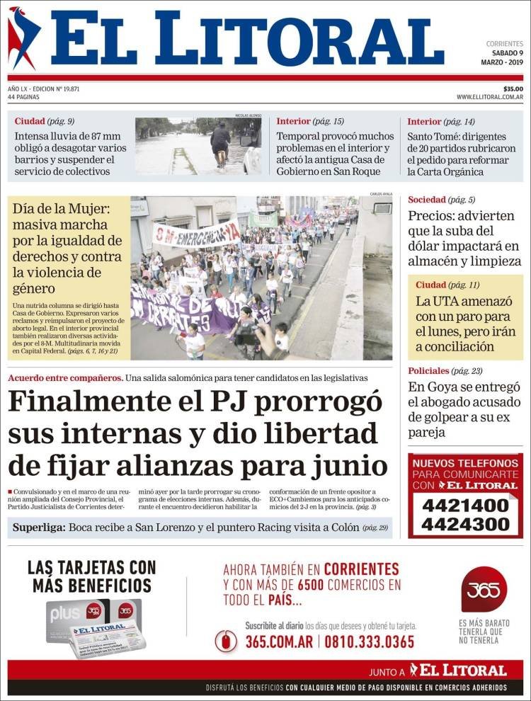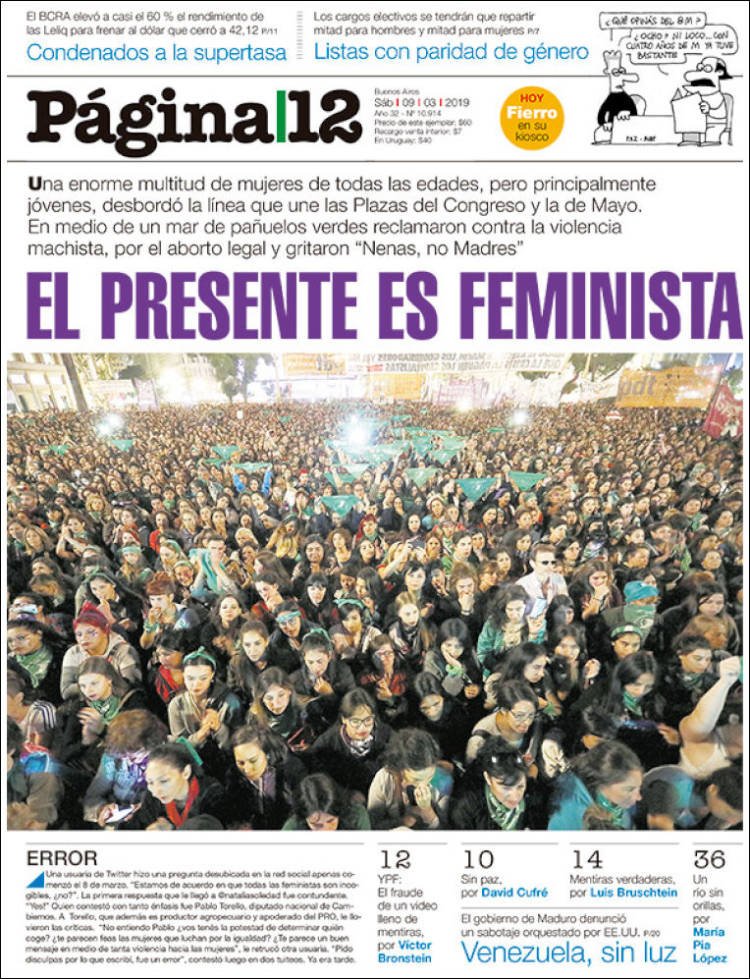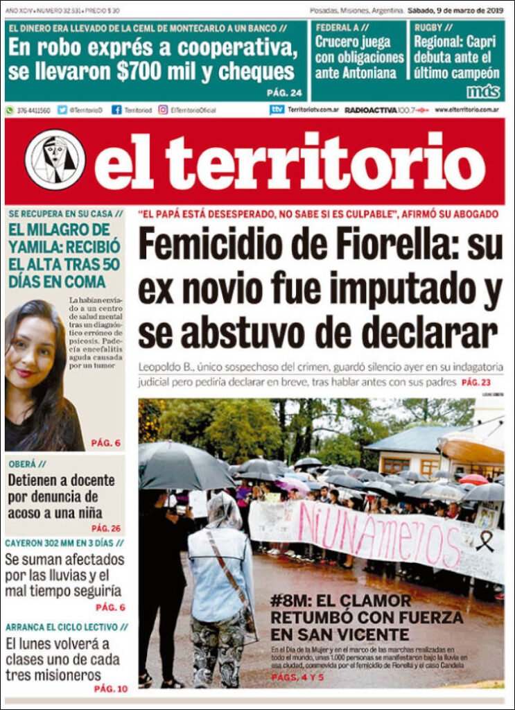 A continuación reproducimos las tapas de los principales diarios del país. La marcha de las mujeres en el tercer Paro por el 8M se replicó en todo el país con los mismos reclamos. En Misiones la mayor marcha fue en San Vicente, la de Posadas se suspendió en respeto a las familias que fueron afectadas por las grandes lluvias del jueves y viernes.