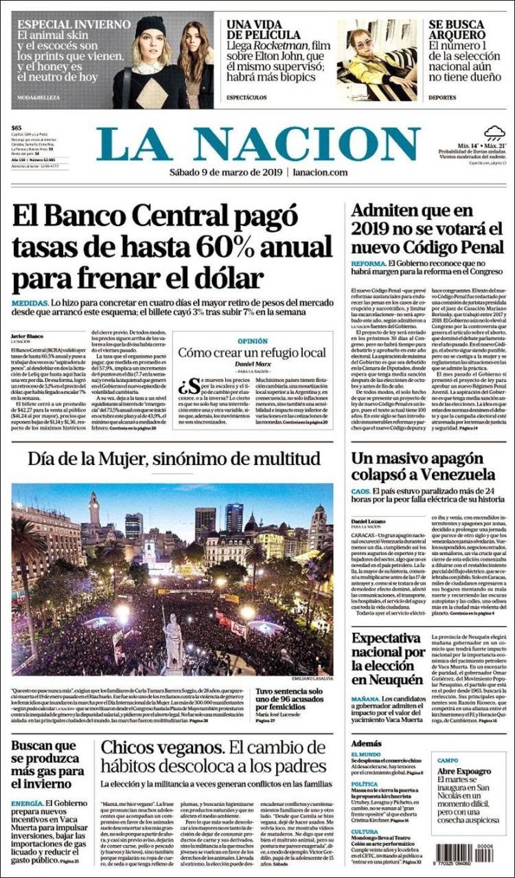 Las tapas del sábado 9: La marcha de las mujeres y la súper tasa para frenar al dólar