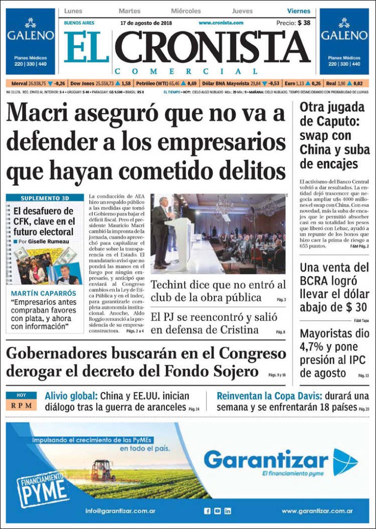 Las tapas del viernes 17/8: Los reclamos por el Fondo de la Soja, nuevas medidas económicas y más de la saga de los cuadernos