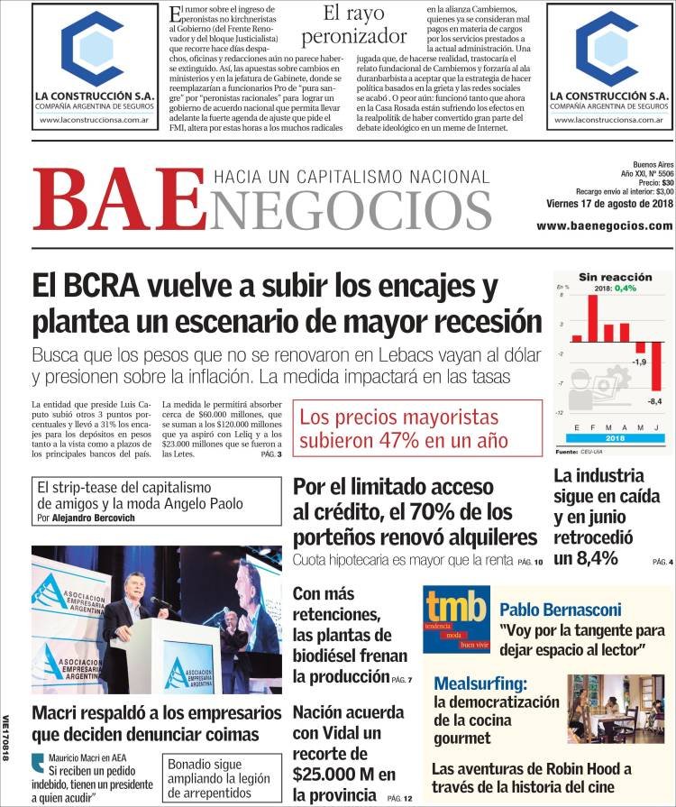 A nivel macro, las nuevas medidas para contener al dólar son la principal noticia para los medios económicos. A la par del encuentro del Presidente Mauricio Macri con los empresarios, que pidieron claridad en la economía y solo escucharon palabras sobre la lucha contra la corrupción.