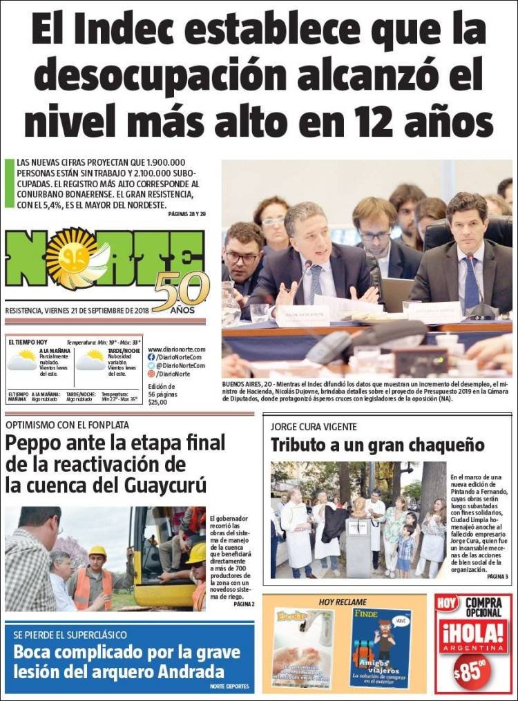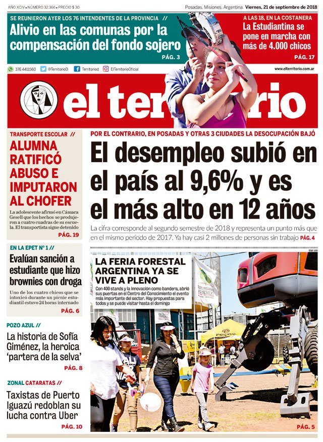 A continuación reproducimos las tapas de los principales diarios del país. Los datos del Indec sobre la desocupación y el costo de la canasta básica fueron contundentes y muestran como impacta la crisis en todo el país.