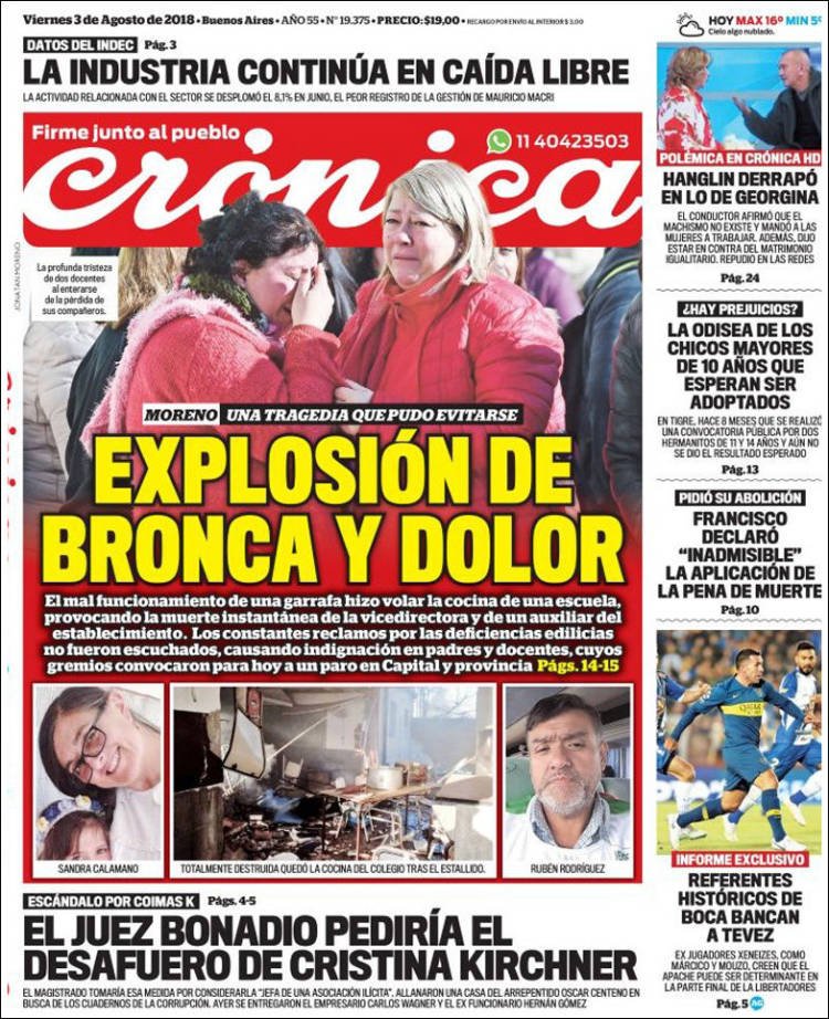 A continuación reproducimos las tapas de los principales diarios del país. El Indec brindó una serie de informes con datos de la industria, el comercio y la construcción, la retracción del sector industrial es la más grave de los últimos años y mostró una caída del sector del 8 por ciento.