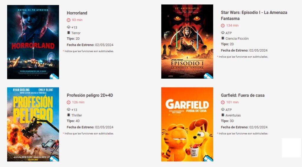 Como cada semana el cine Las Tipas ubicado en el Paseo Libertad, ofrece en su cartelera una variedad de películas en 4D, 3D y 2D, en sus tres salas. En esta oportunidad, renuevan su cartelera con “PROFESIÓN PELIGRO”, “HORROLAND”, “GARFIELD FUERA DE CASA” y el reestreno de “STAR WARS, EPISODIO I: LA AMENAZA FANTASMA” . Asimismo, continúan las funciones de “LA PRIMERA PROFECÍA”, “UN GATO CON SUERTE”; “GODZILLA Y KONG”; “KUNG FU PANDA 4” y “PATOS”.