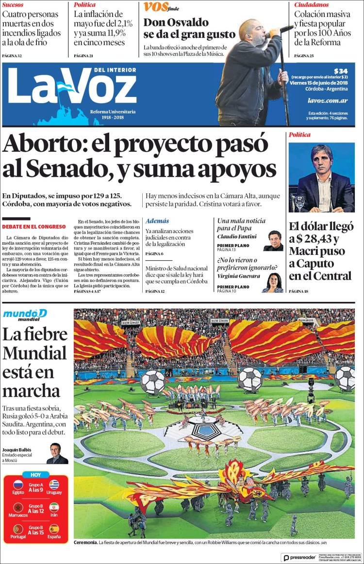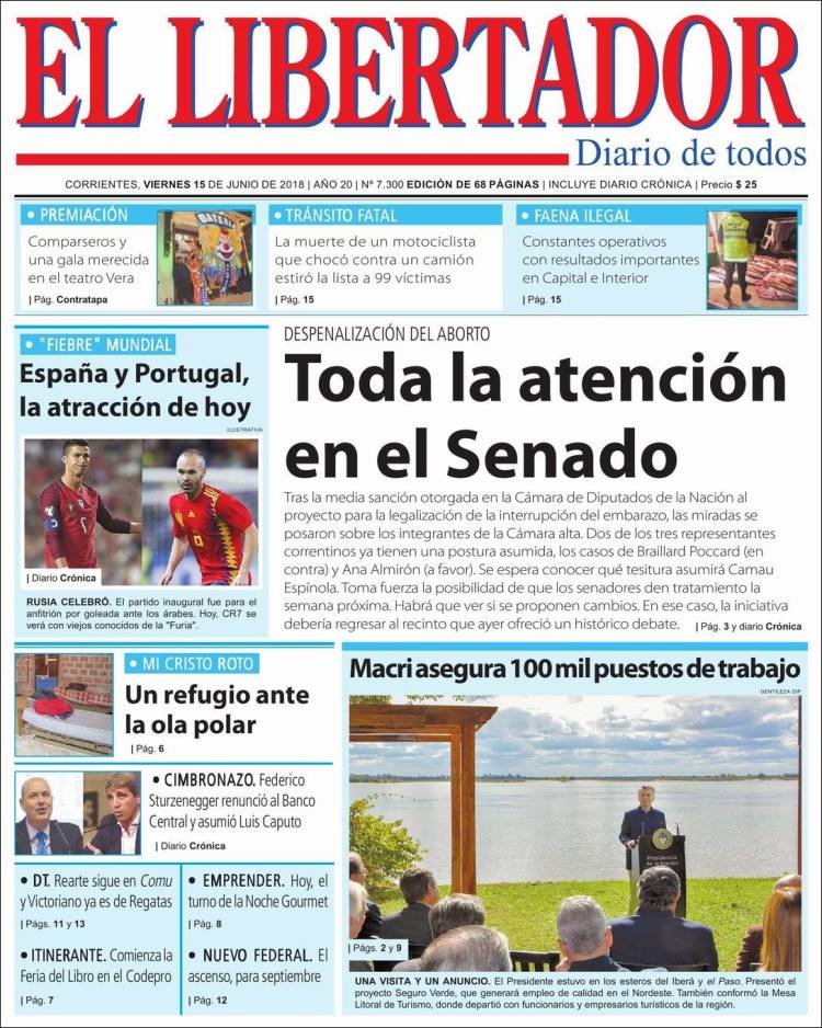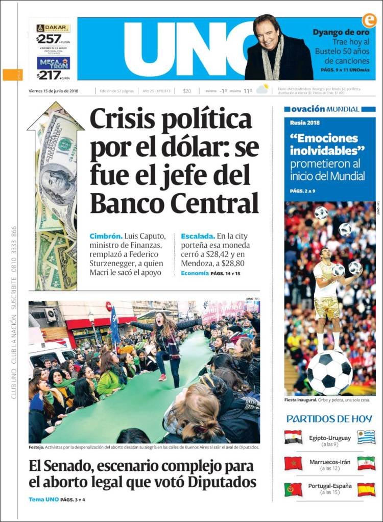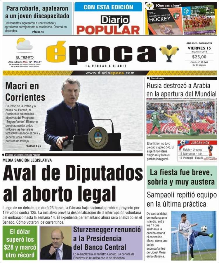 Los diarios del viernes 15/6: La despenalización del aborto, Caputo al BCRA y el Mundial