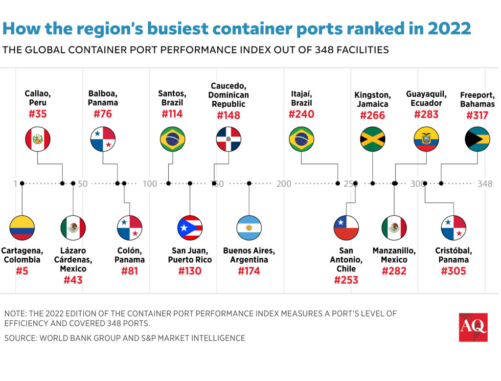 El estallido de violencia en Ecuador a principios de este año se debió en gran medida a bandas de narcotraficantes que luchan por el control de su puerto más grande, Guayaquil. El contrabando en el puerto chileno de San Antonio está impulsando una amplia ola de delincuencia, lo que pesa sobre el índice de aprobación del presidente Gabriel Boric. Los chinos están construyendo un puerto de 3.500 millones de dólares cerca de Lima, una bonanza potencial para exportadores de lugares tan lejanos como Brasil, y una fuente de tensión geopolítica con Estados Unidos. Si los países, desde México hasta Colombia, quieren aprovechar plenamente las oportunidades actuales de nearshoring, las mejoras portuarias deben ser parte de la ecuación, con hasta 55.000 millones de dólares en inversiones necesarias para 2040.