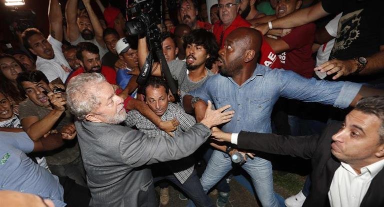 Fue tras el segundo intento, luego de que la militancia del PT apostada en el lugar impidiese la primera salida bloqueando las puertas de salida, pese a las maniobras de distracción de los encargados de seguridad de su custodia que incluyeron dos autos negros y uno gris. Ante esta situación, Lula debió retornar al edificio para evitar desmanes luego de varios minutos en que su custodia intentó negociar con los simpatizantes sin éxito.