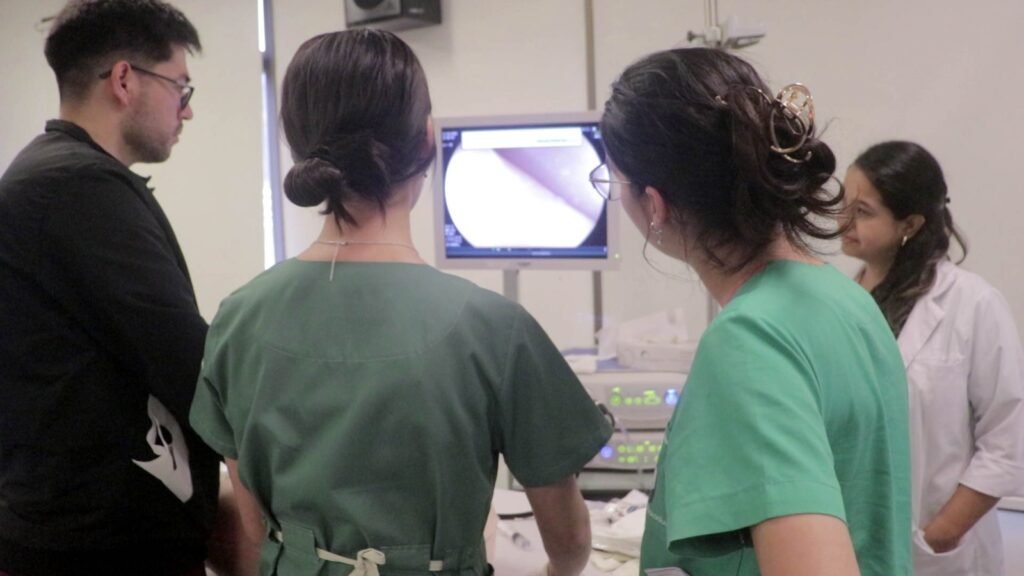 El Dr. Guillermo Benítez, integrante del Servicio de Gastroenterología, compartió la capacitación con profesionales del Madariaga luego de haberse formado en España durante los primeros meses de 2025, con el apoyo de la Fundación Parque de la Salud. Hoy aplica esos conocimientos en el entrenamiento local, especialmente en las técnicas de disección endoscópica submucosa y de tercer espacio.