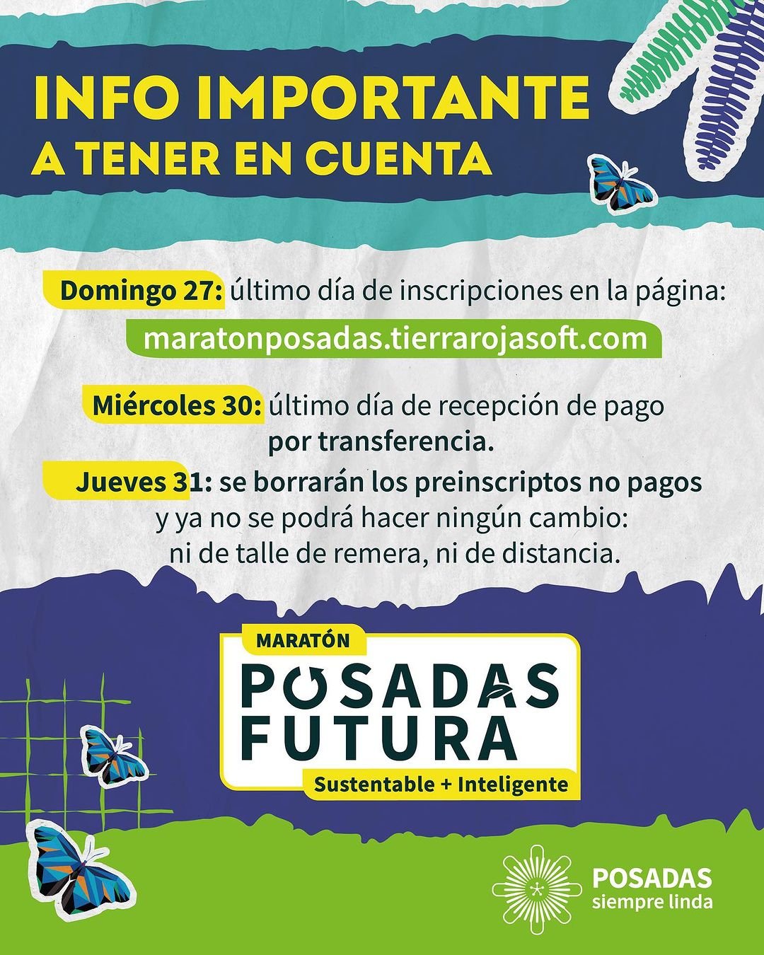La Municipalidad de Posadas informa que se han actualizado los plazos para el cierre de inscripciones a la esperada Maratón Posadas Futura Sustentable + Inteligente. En este sentido el nuevo cronograma se detalla a continuación.