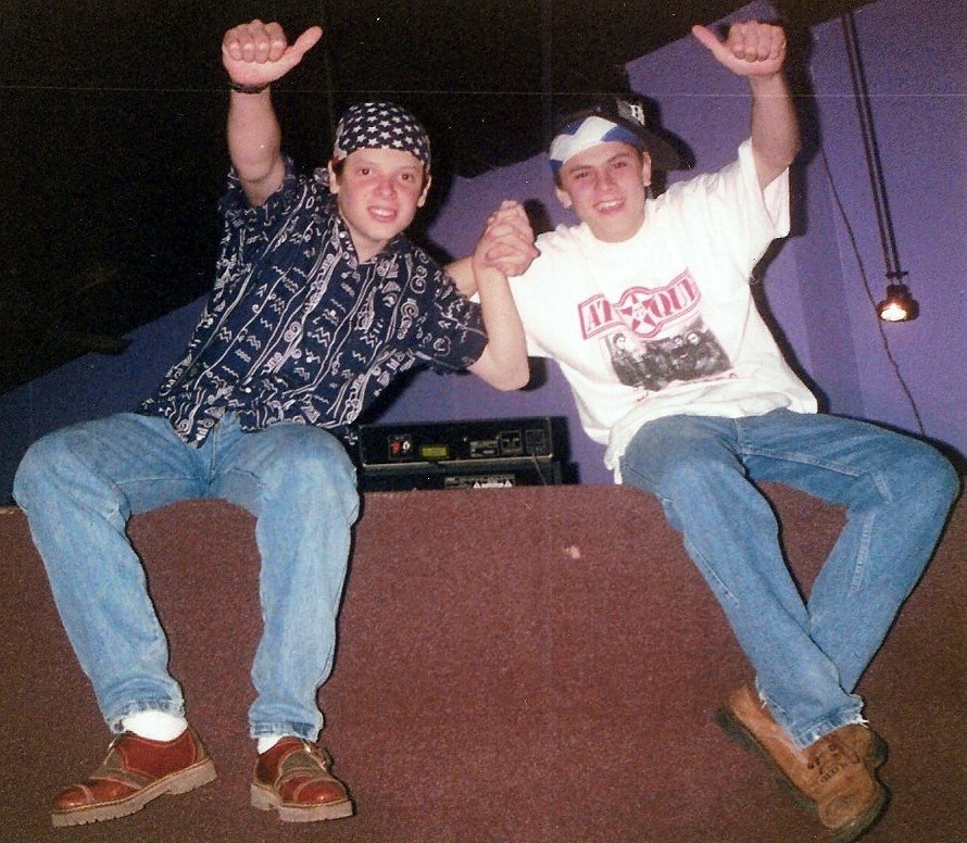 En mi infancia fui muy influenciado por la música que escuchaba con mis primos. Me hice fan de la música, me crié escuchando a Queen, Pink Floyd Charly, Soda Stereo, y llegando al final de la escuela primaria, empezamos a organizar con mis amigos las fiestas, a preparar las luces con latas de leche Nido, el papel celofán, comprábamos las pelotas de fútbol y pegábamos los espejitos para hacer las bochas de espejos… poníamos música con cassettes, grabábamos de la radio… después de eso entré al Liceo Storni (se ríe), por influencia de mis padres, pero duré seis meses y me fui a la Comercio 6. Estando en segundo año con Alfredo Gottschalk y “Caño” Sosa empezamos a comprar vinilos, discos y nos juntábamos los días que podíamos a practicar.