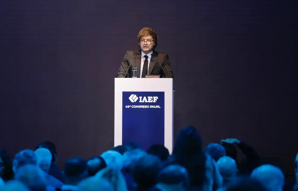 En el cierre del 42° Congreso Anual del IAEF, el presidente defendió su programa económico, reivindicó el DNU 70/23 y apuntó contra economistas críticos. “Liberamos el mercado cambiario y el dólar no se disparó”, aseguró.