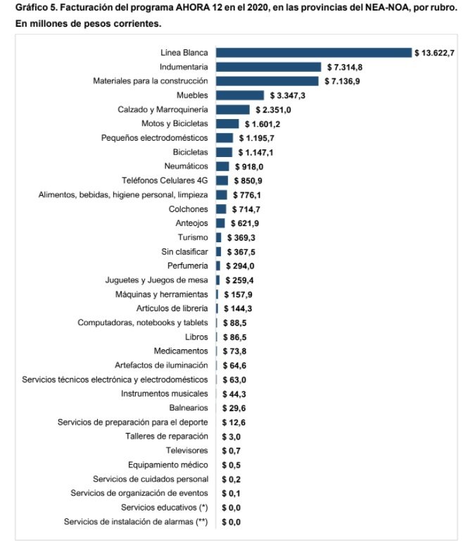 • “Línea Blanca” (Aires acondicionados, climatizadores de aire y/o ventilación, lavavajillas, lavarropas y secarropas, cocinas, hornos y anafes, calefactores y estufas, termotanques y calefones, heladeras, congeladores y freezers). Concentró el 31,2% del total, con una facturación por $13.622,7 millones.