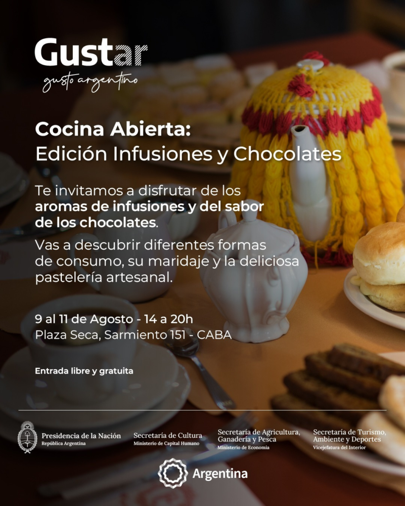 “Cocina Abierta: edición infusiones y chocolates” se podrá recorrer del 9 al 11 de agosto, de 14 a 20, en el Palacio Libertad (Sarmiento 151, CABA). La entrada es libre y gratuita.
