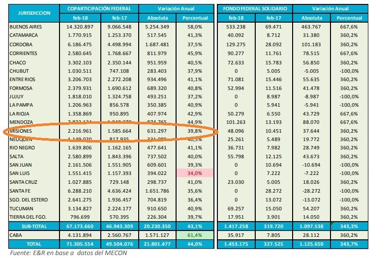Hasta ese momento, en toda la era de Mauricio Macri en el Gobierno, Misiones había visto como sus ingresos por Coparticipación no alcanzaban para empatarle al incremento de precios.