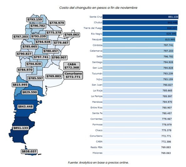 Aun así, Misiones volvió a ubicarse entre las provincias con el changuito más económico del país. Con un costo de 769.063 pesos, quedó incluso por debajo del interior de Buenos Aires y de la Ciudad de Buenos Aires. El extremo opuesto se observó en Santa Cruz, Chubut y Tierra del Fuego, donde el mismo conjunto de productos supera los 830 mil pesos. La diferencia es notable: la canasta patagónica más cara cuesta más de 80 mil pesos adicionales respecto de la misionera.