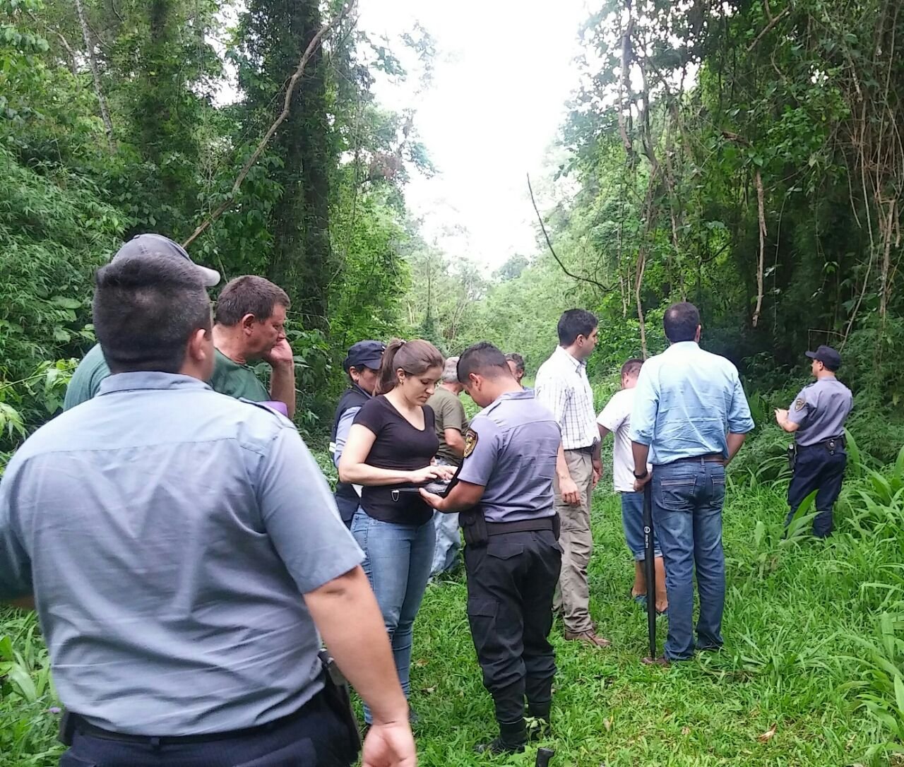 Acompañaron la inspección, miembros de la Policía Científica división Criminalística, la secretaria del Juzgado, Mercedes Ravassi, el subsecretario de Ecología Juan Manuel Díaz, equipo de Guardaparques del Ministerio de Ecología y representantes de la empresa Arauco S.A. y el Director de Güira Oga, Jorge Anfuso.